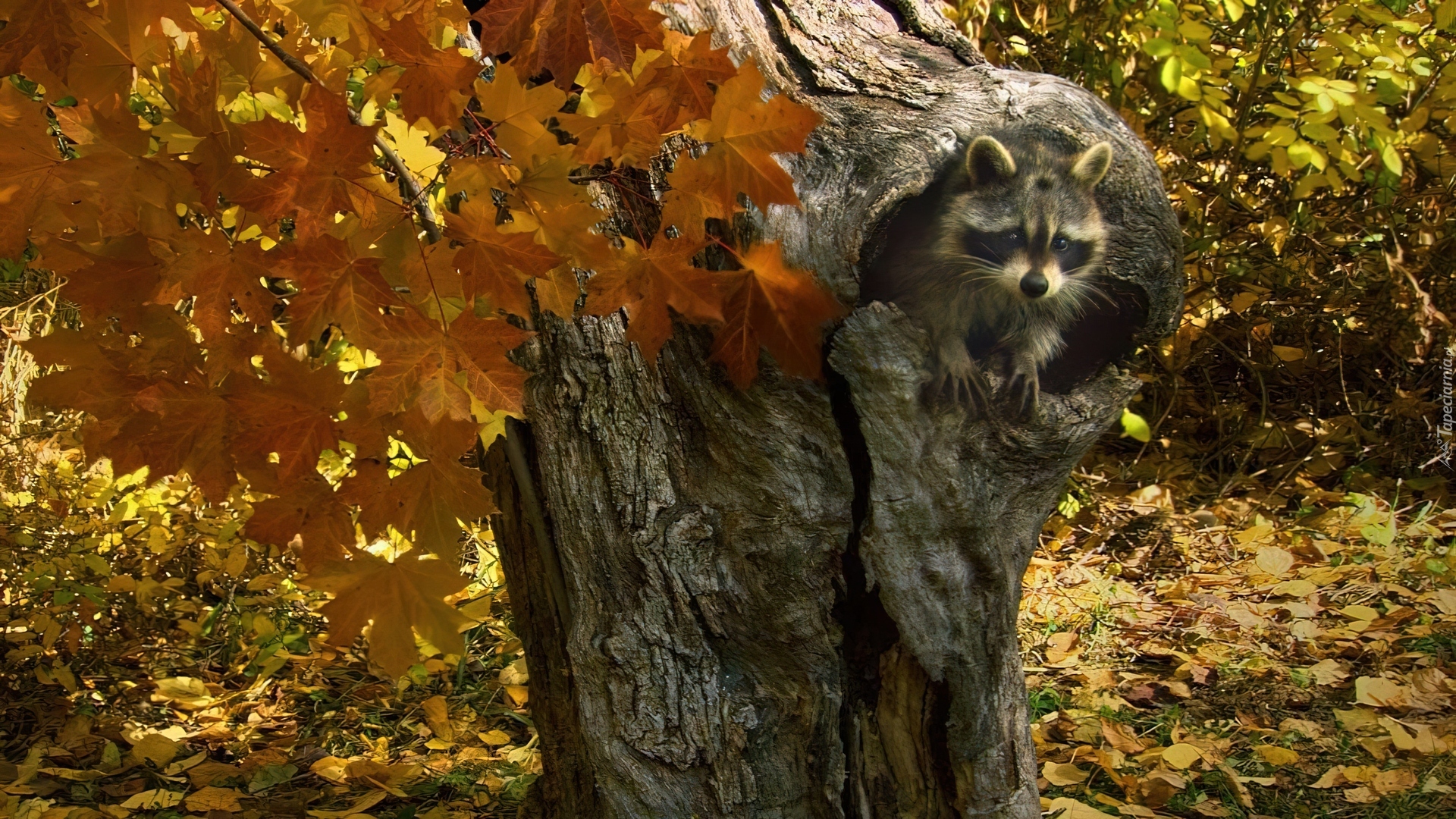Edytor tapety: Szop, Drzewo, Liście