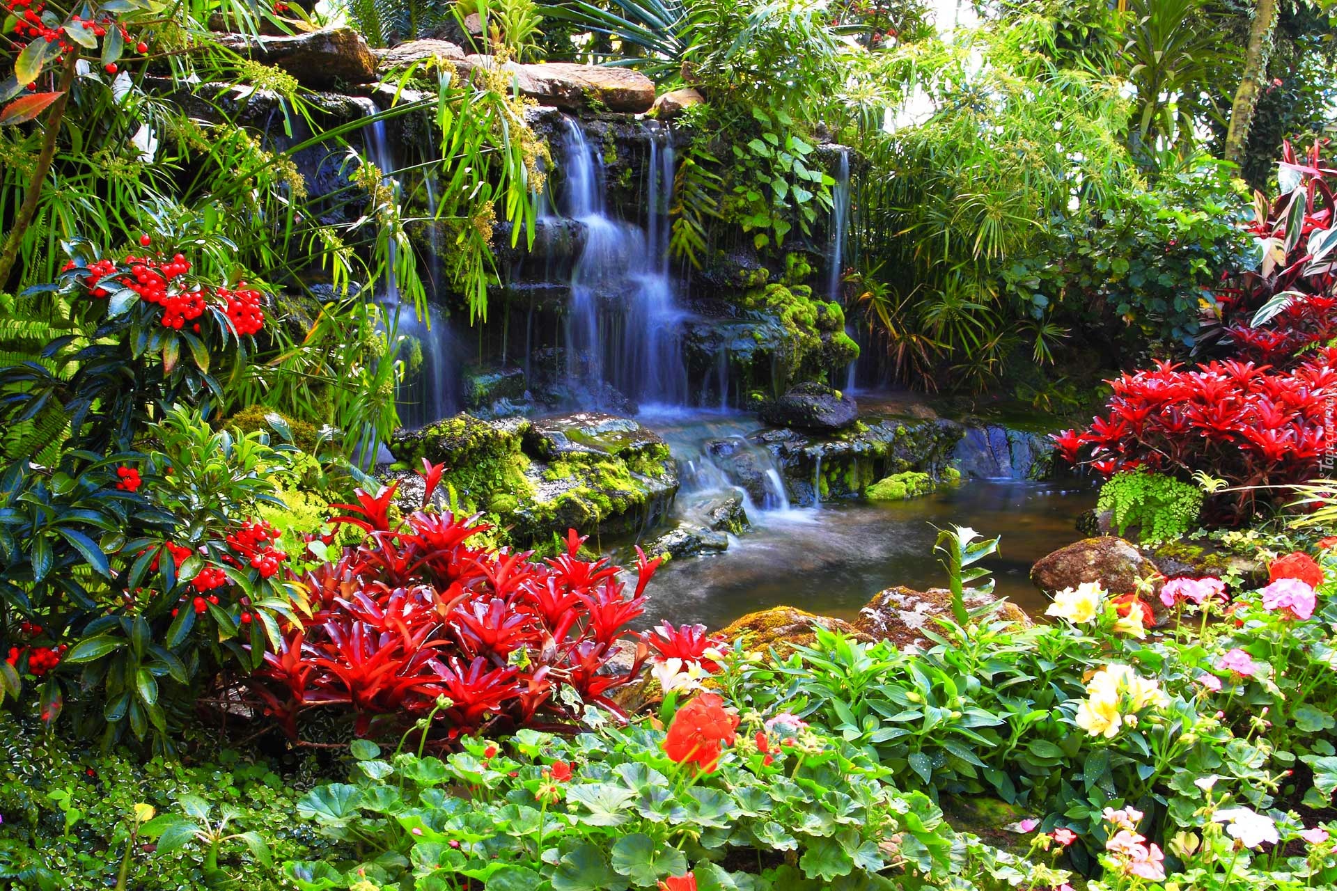 Edytor tapety: Wodospad, Kwiaty