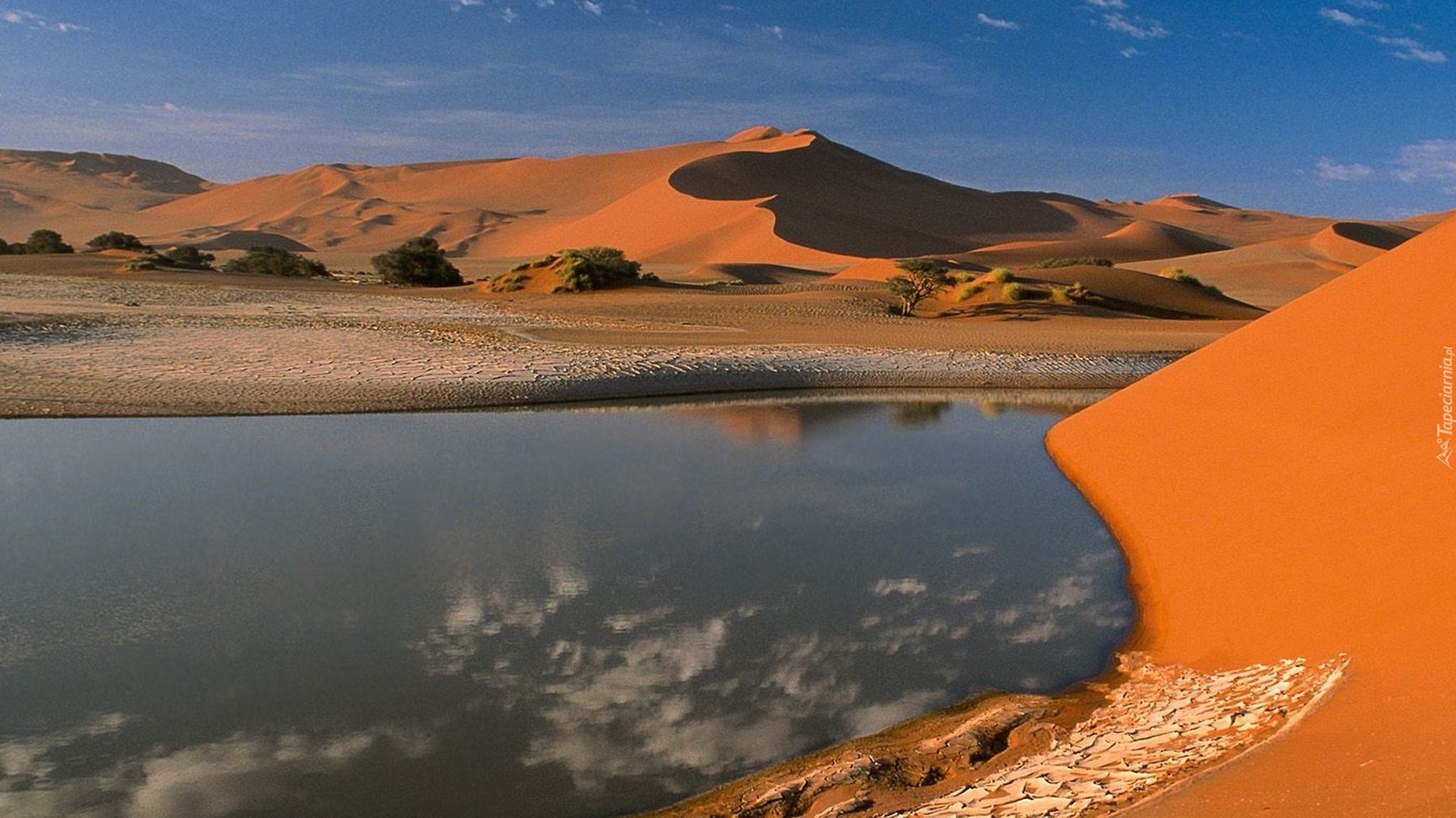 Edytor tapety: Pustynia, Zbiornik, Wodny, Drzewa