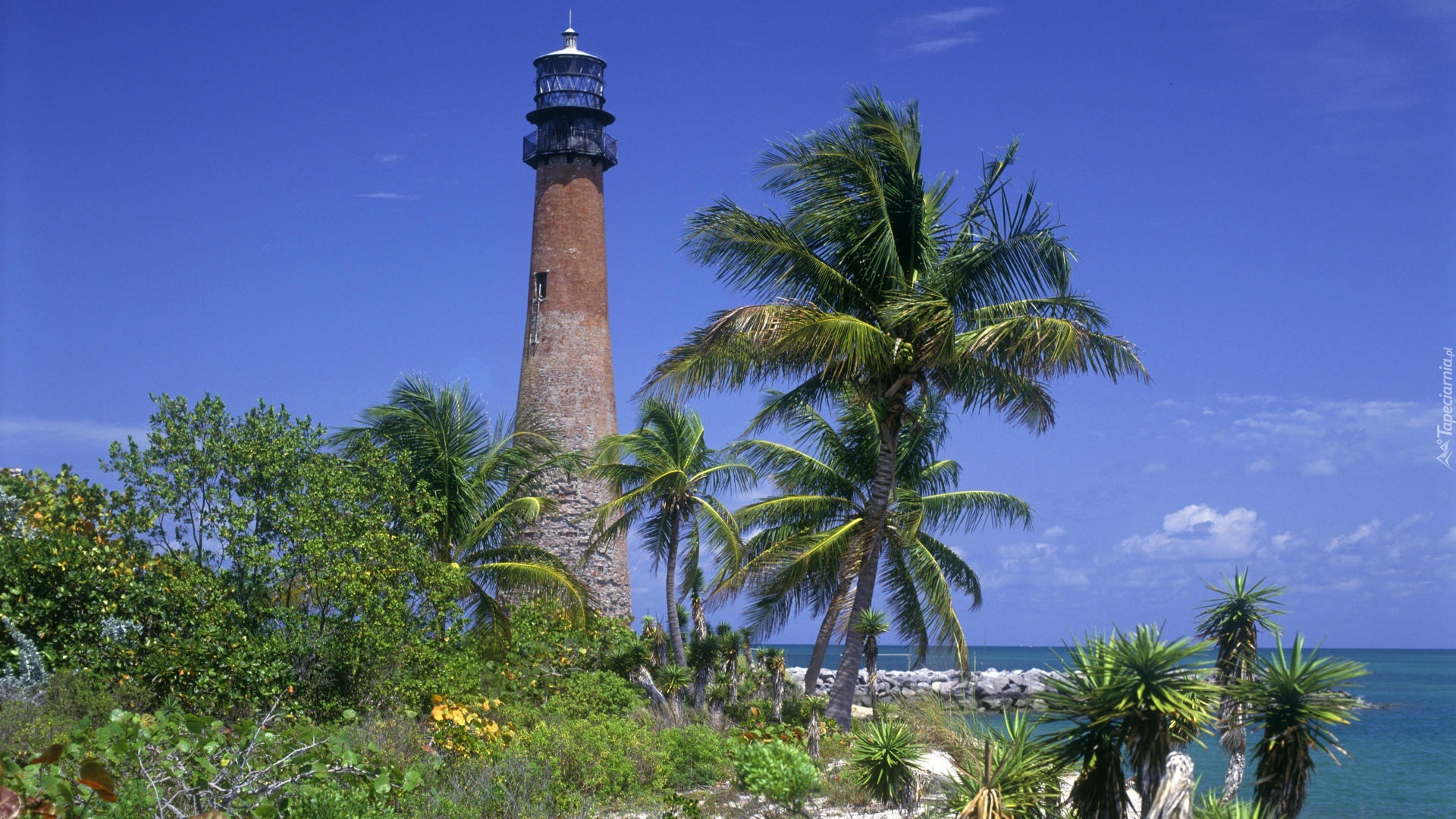 Edytor tapety: Morze, Palmy, Latarnia Morska