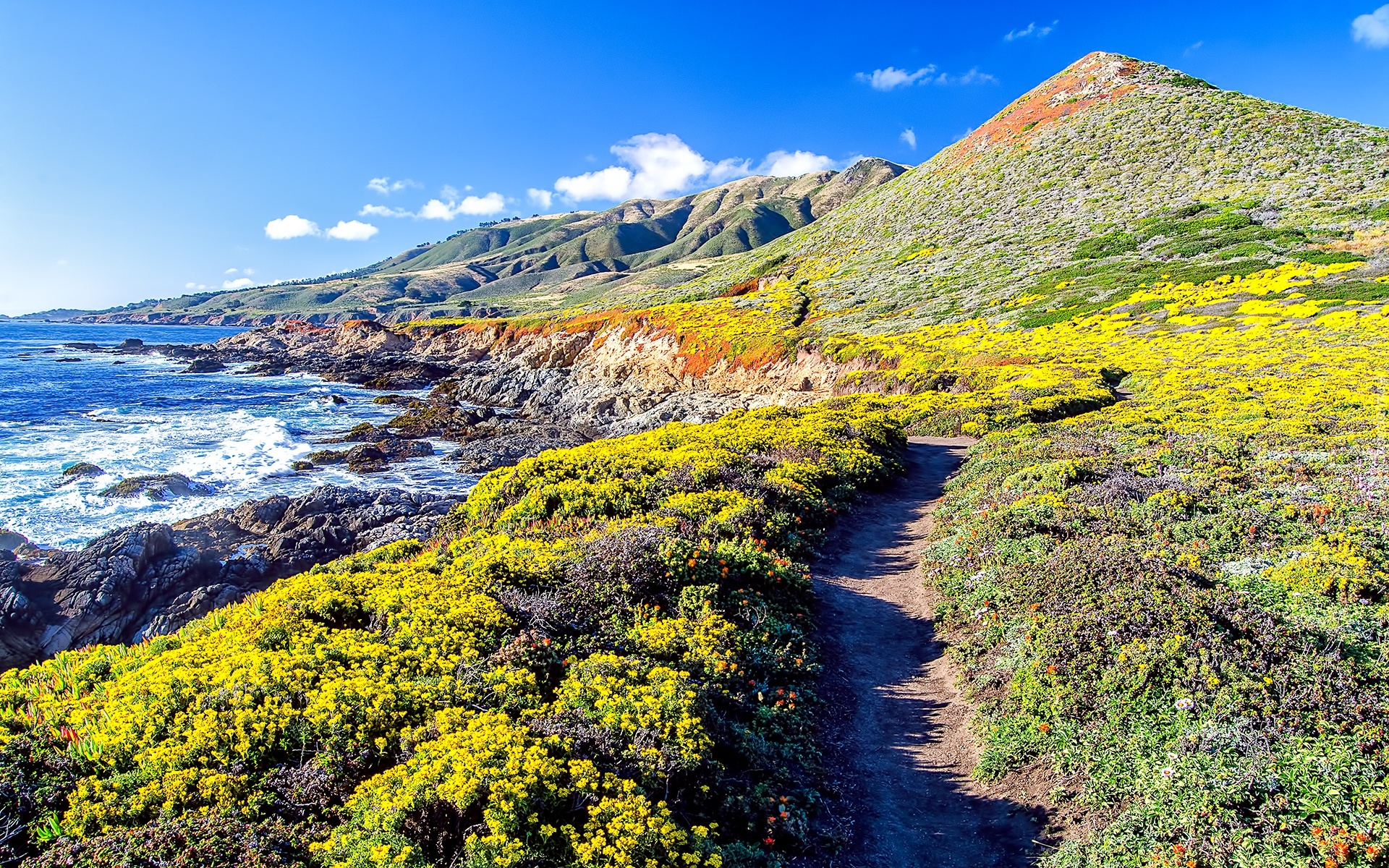 Edytor tapety: Wybrzeże, Morze, Góry, Krzewy