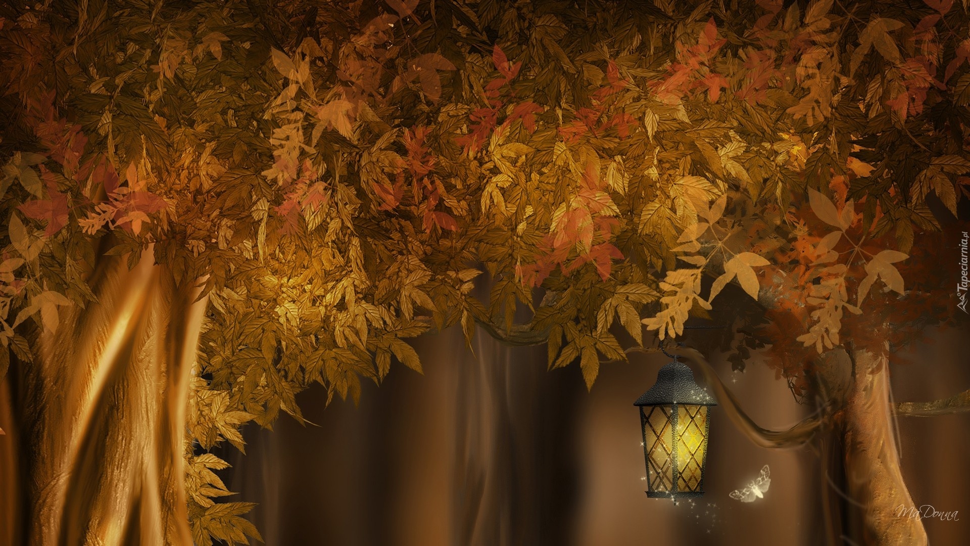 Edytor tapety: Drzewa, Liście, Lampion, Art
