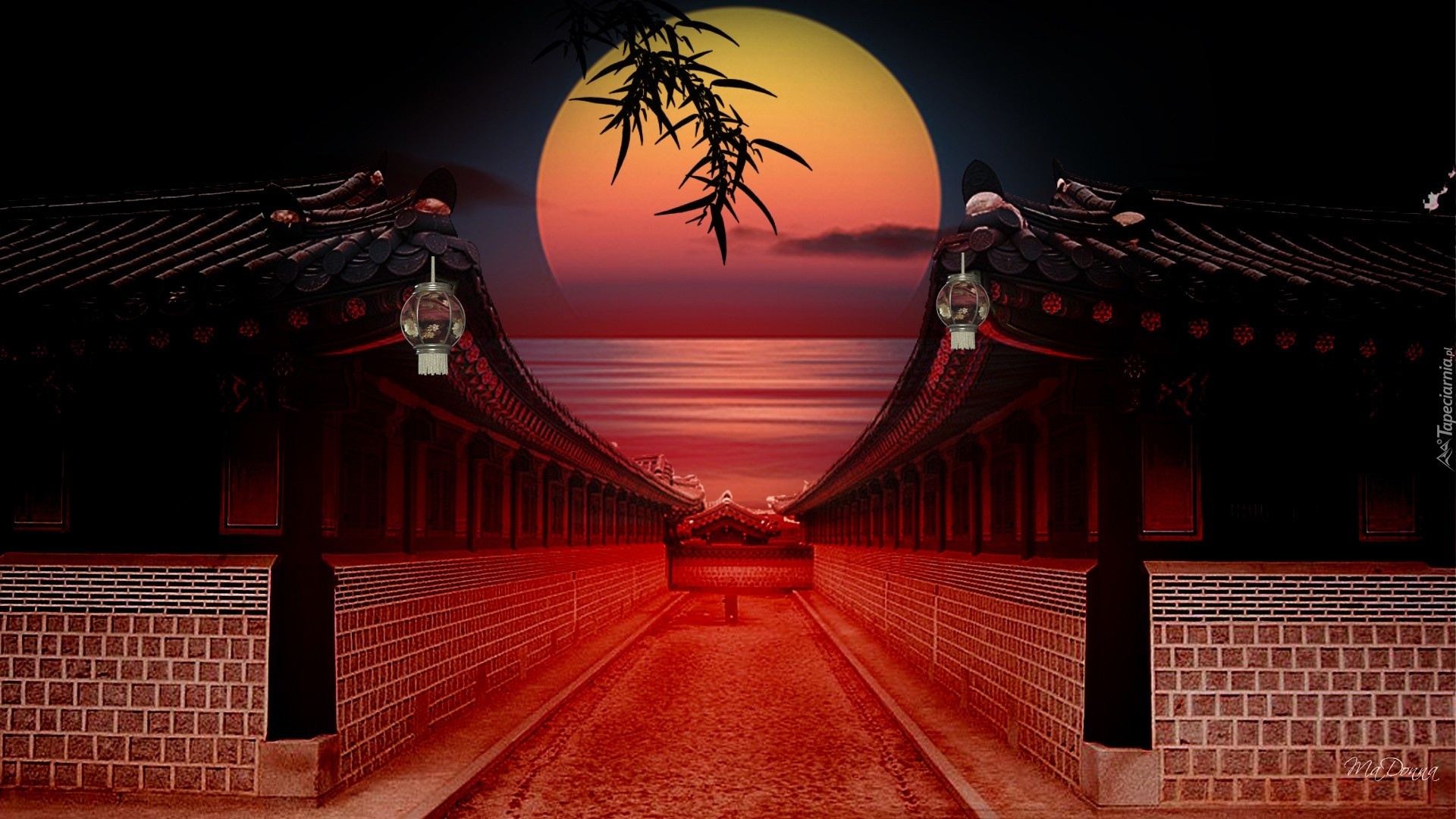 Edytor tapety: Zachód, Słońca, Japoński, Domek, Art