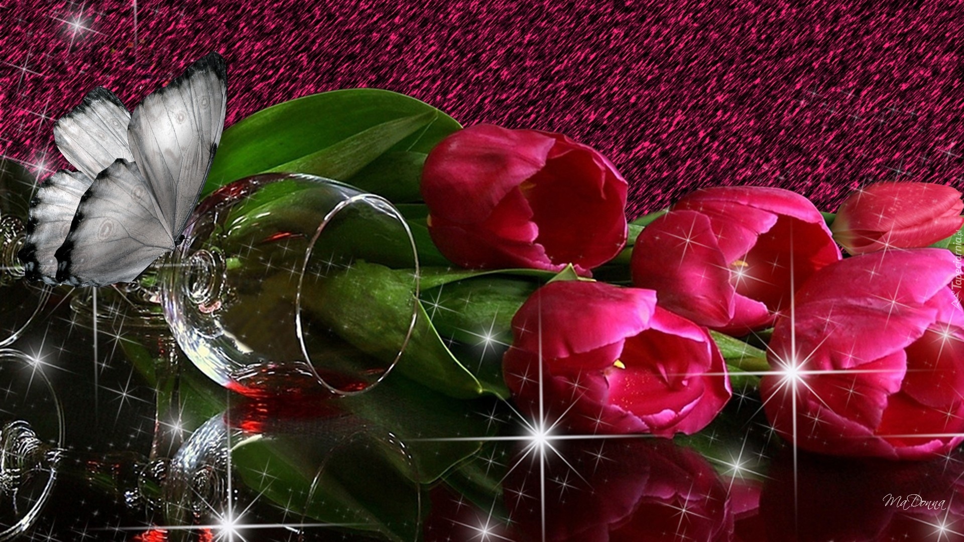 Edytor tapety: Tulipany, Kieliszek, Motyl, Art