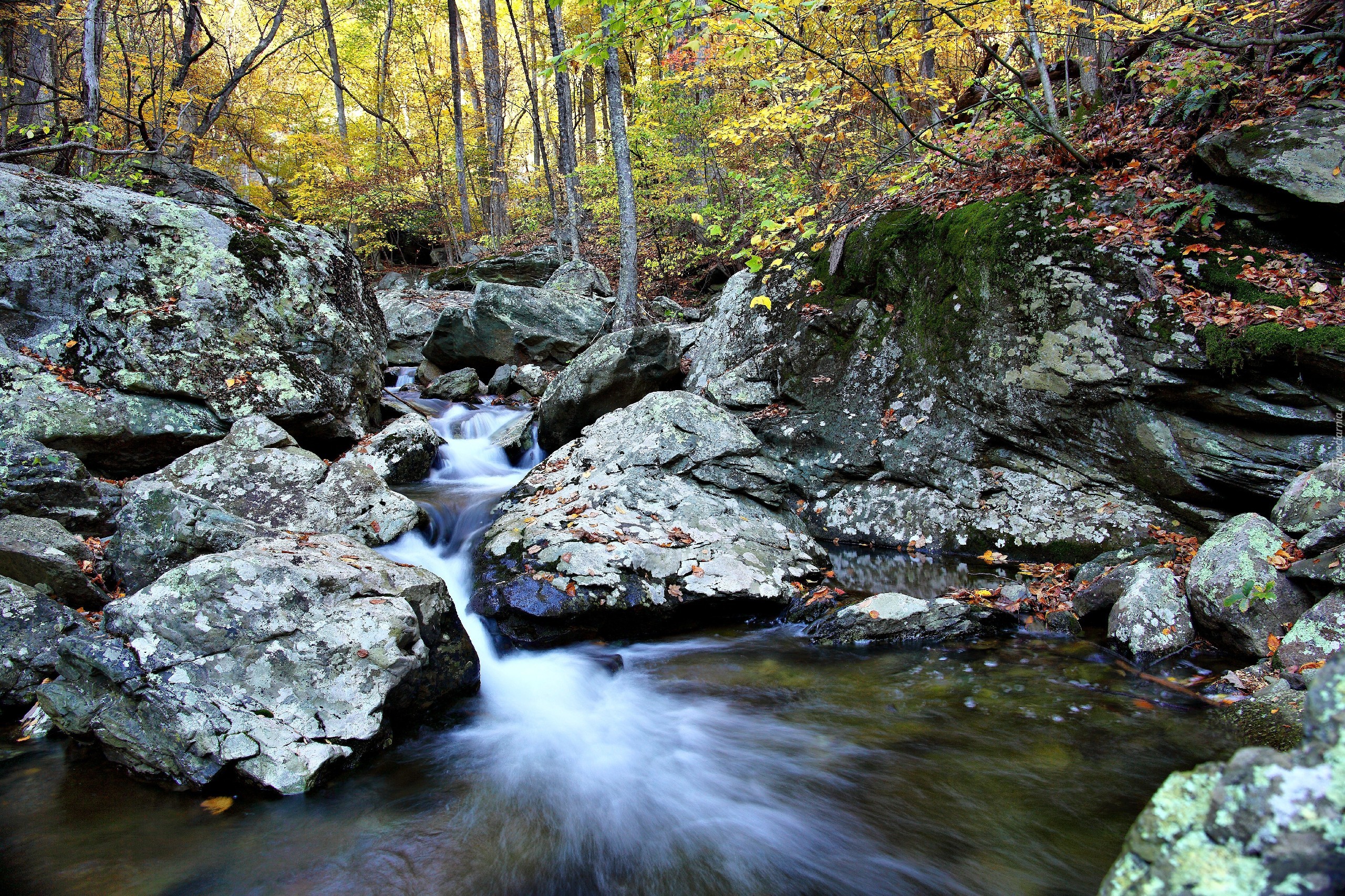 Edytor tapety: Jesień, Wodospad, Kamienie