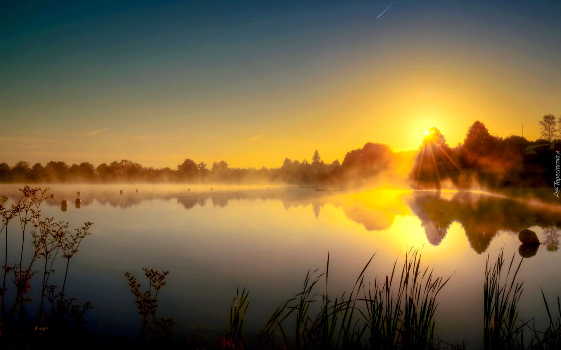 Edytor tapety: Jezioro, Zachód, Słońca