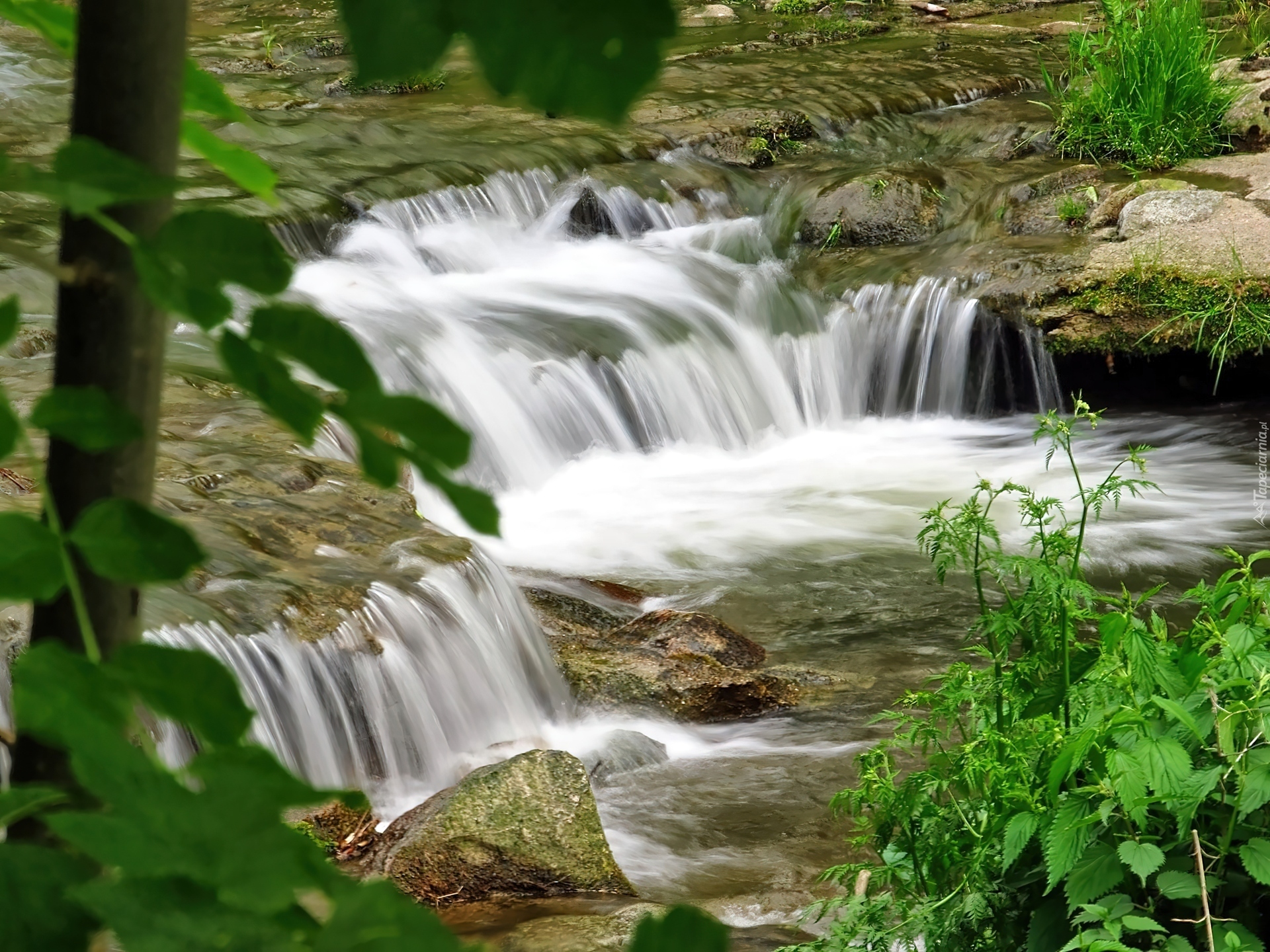 Edytor tapety: Kaskada, Rzeka, Liście