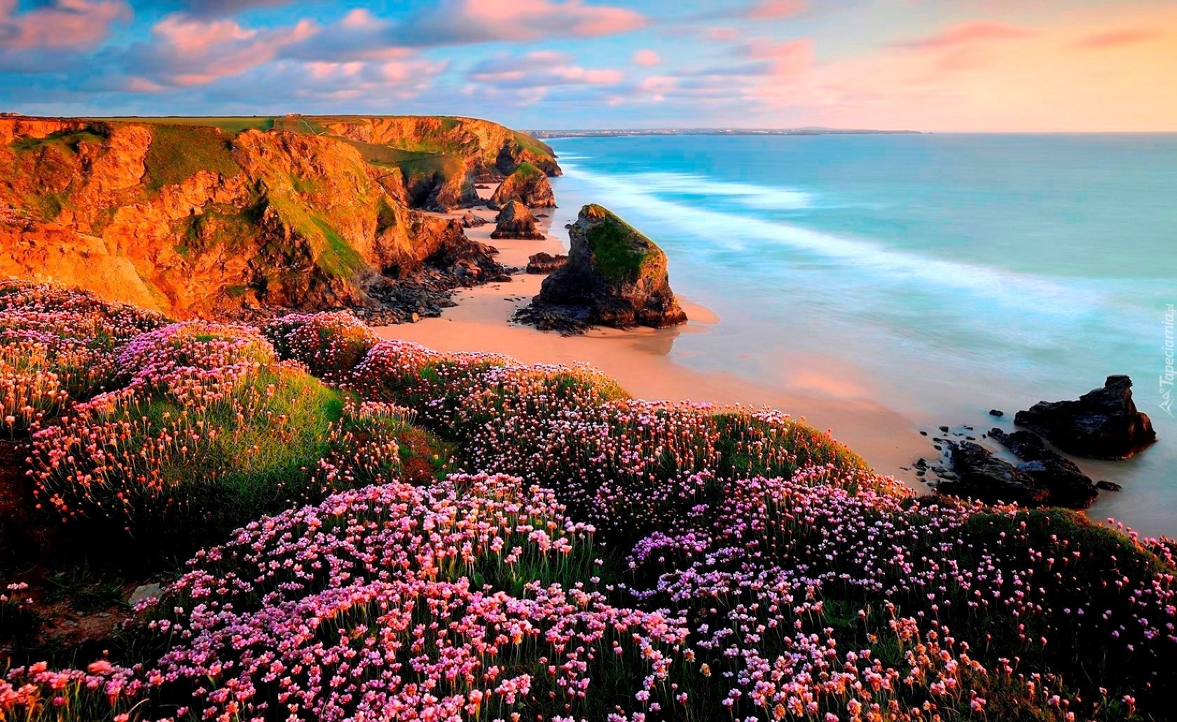 Edytor tapety: Skały, Kwiaty, Morze, Chmury