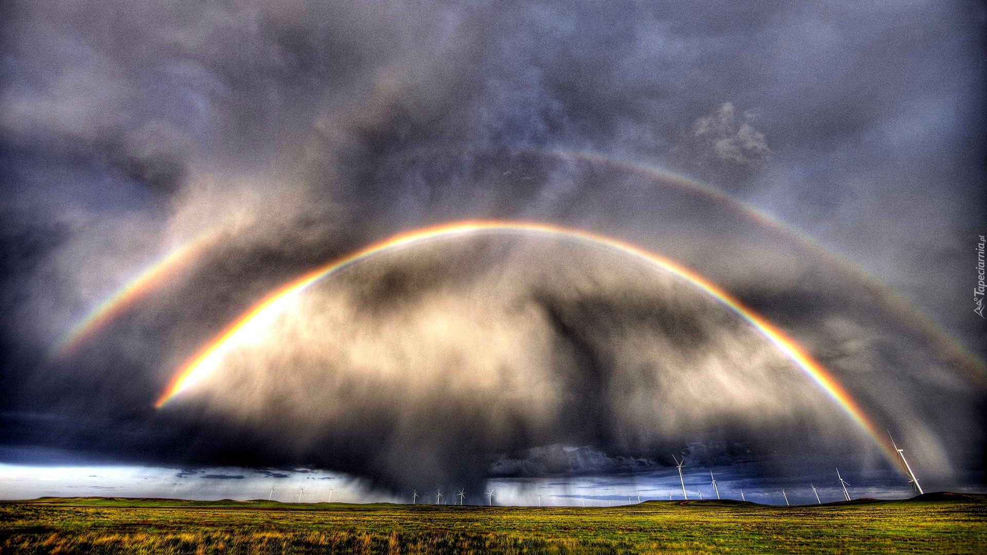 Edytor tapety: Chmury, Podwójna, Tęcza, Wiatraki