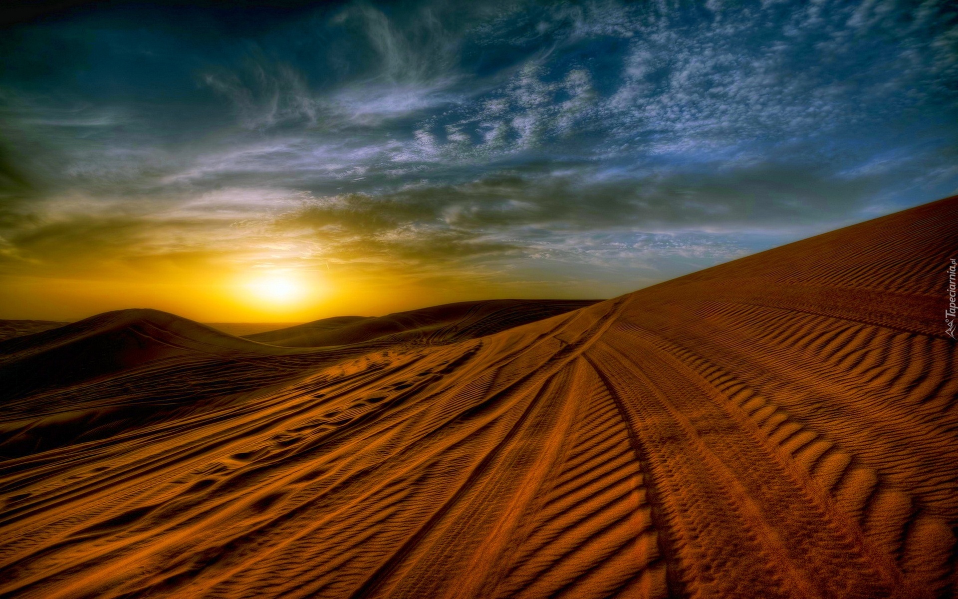 Edytor tapety: Zachód, Słońca, Pustynia, Ślady, Kół