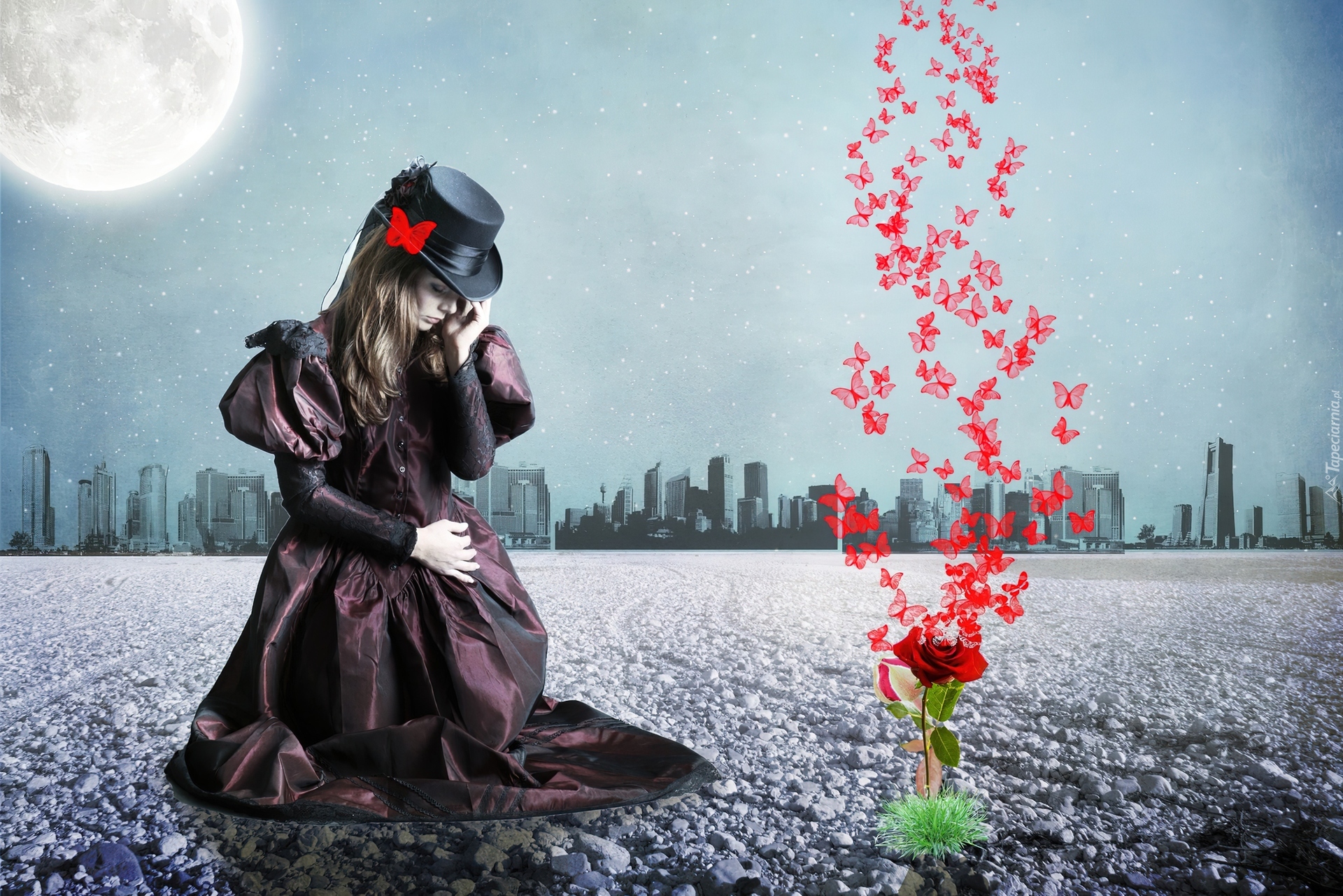 Edytor tapety: Kobieta, Róża, Motyle