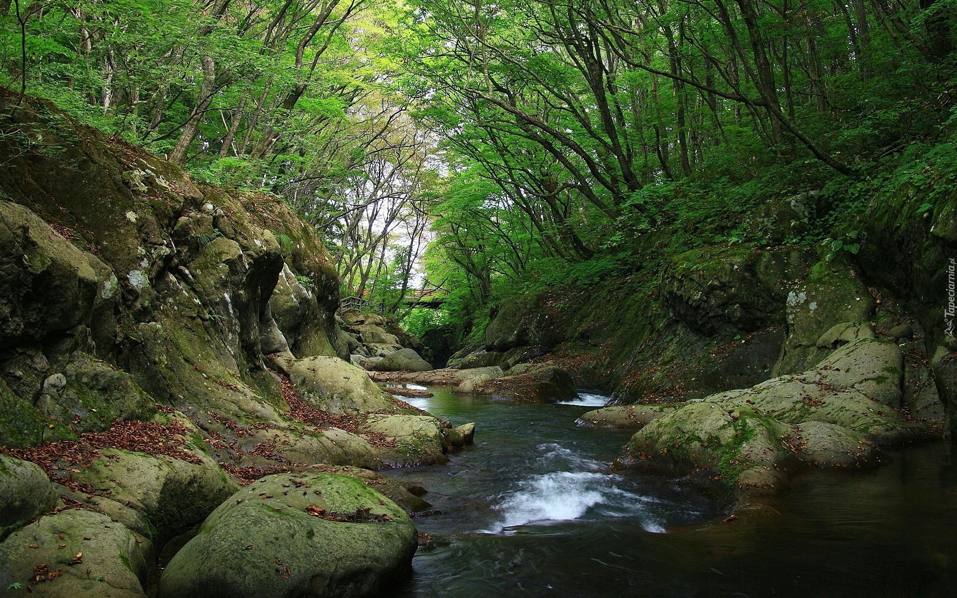 Edytor tapety: Rzeka, Kamienie, Las