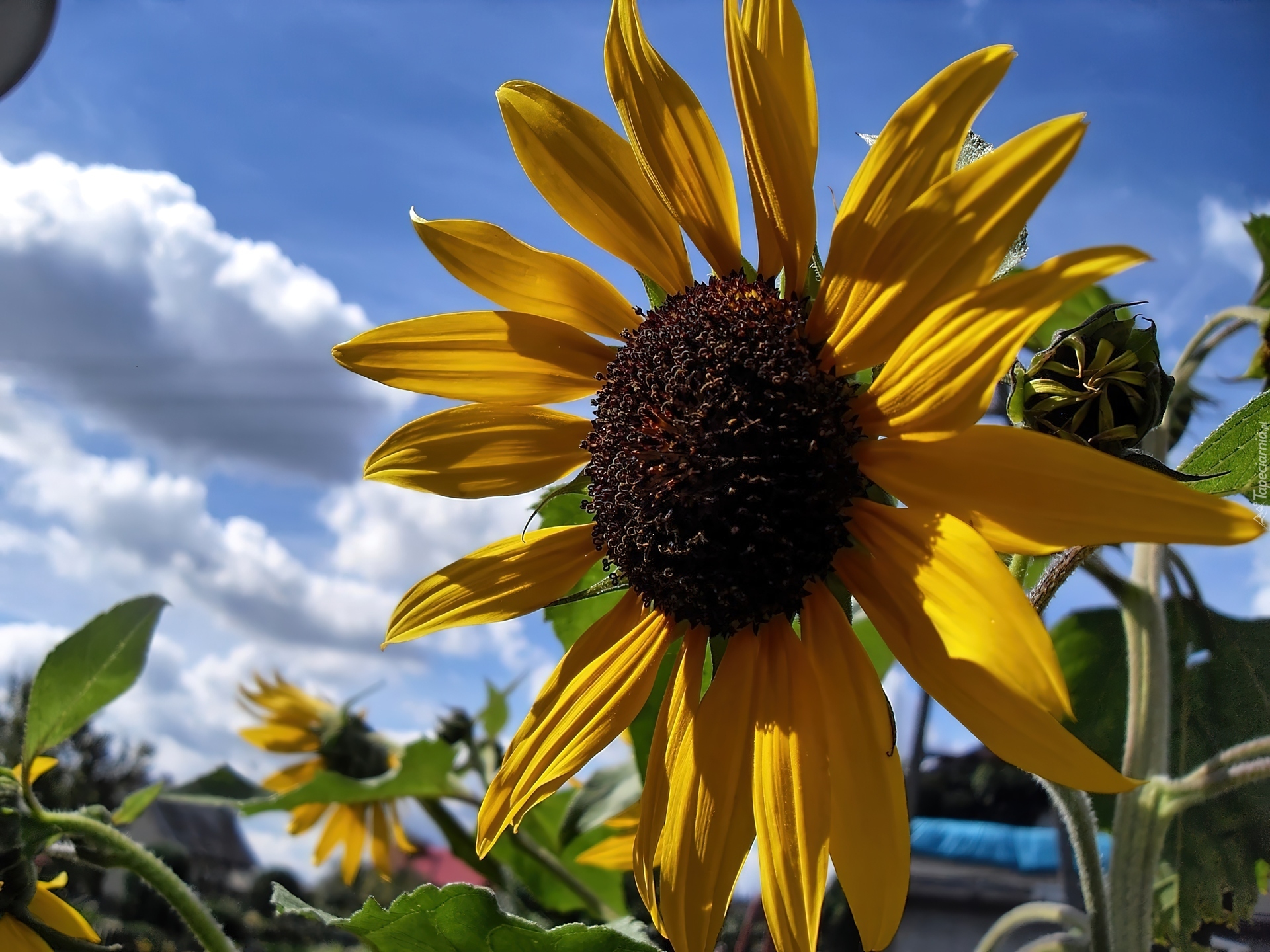 Edytor tapety: Lato, Ogród, Słonecznik, Niebo, Chmury
