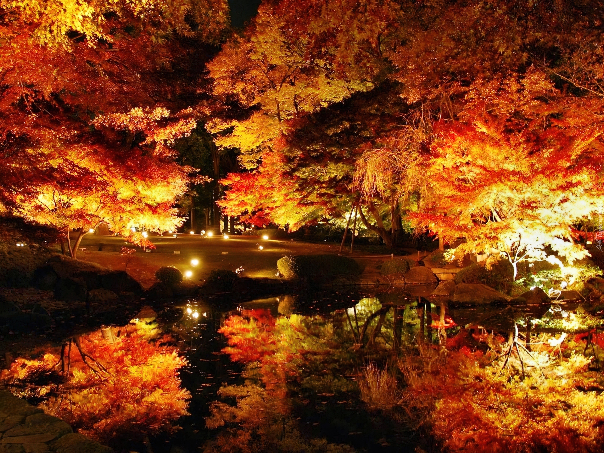 Edytor tapety: Oświetlony, Park, Staw, Odbicie