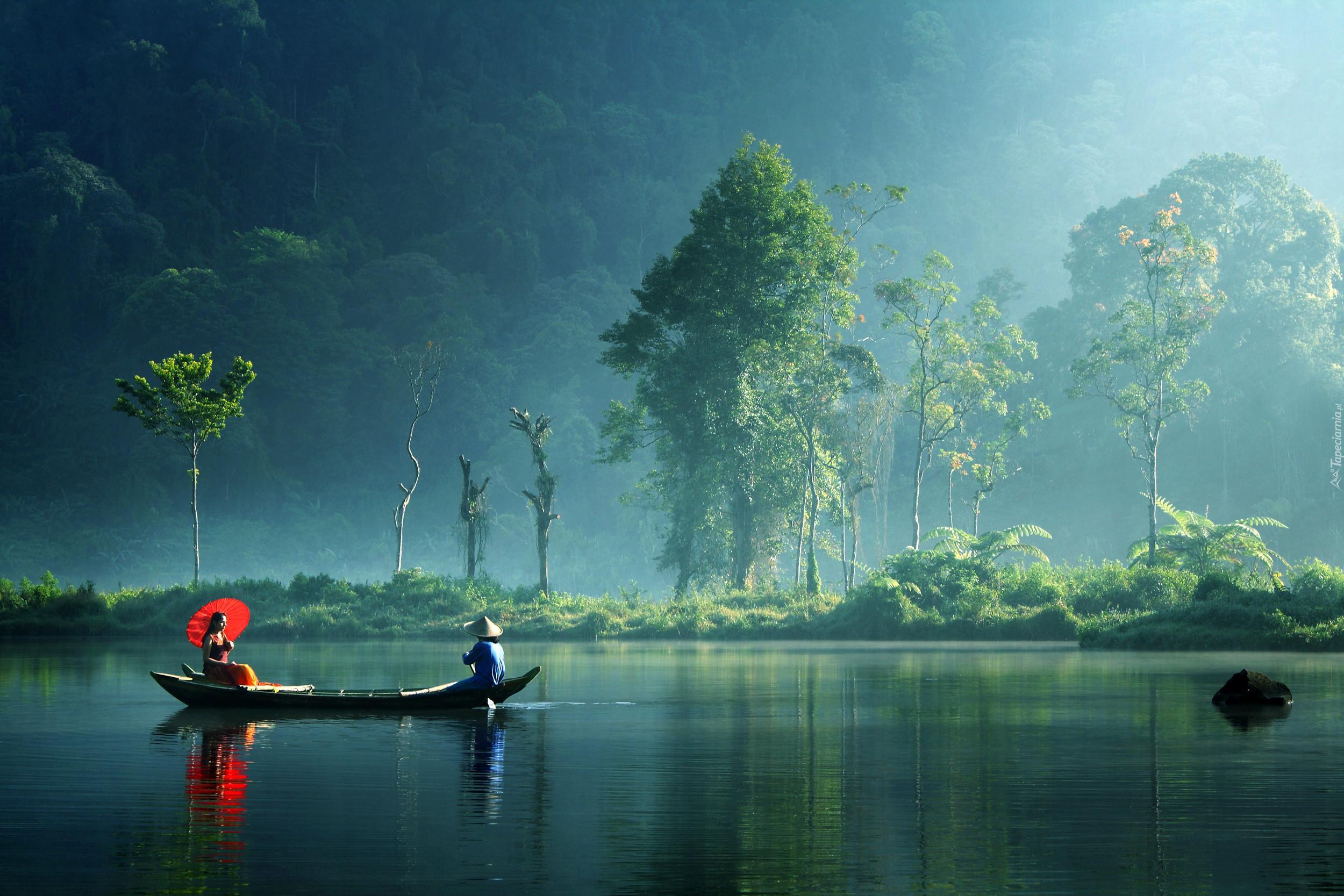 Edytor tapety: Łódź, Rzeka, Drzewa