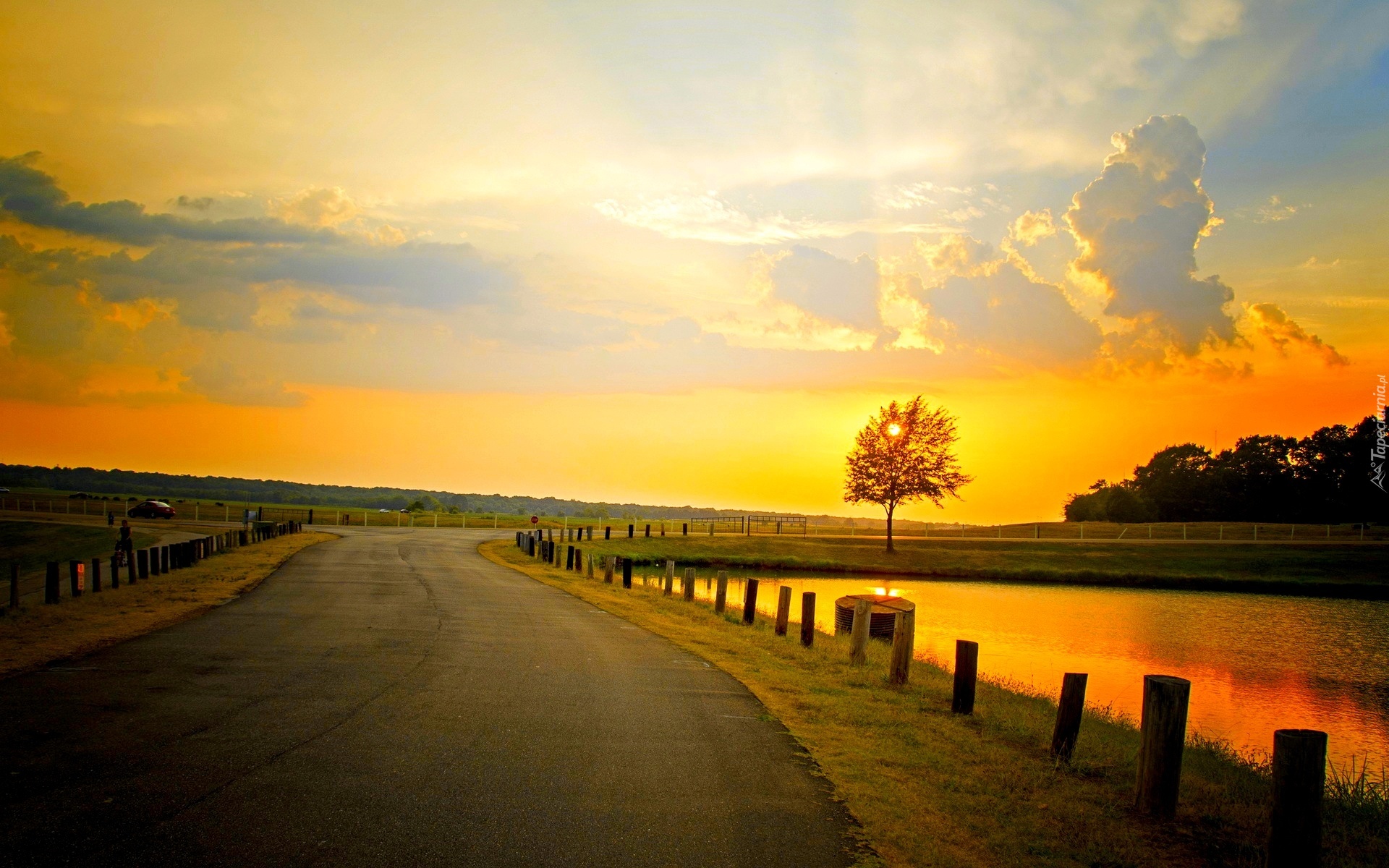 Edytor tapety: Droga, Zachód, Słońca, Horyzont