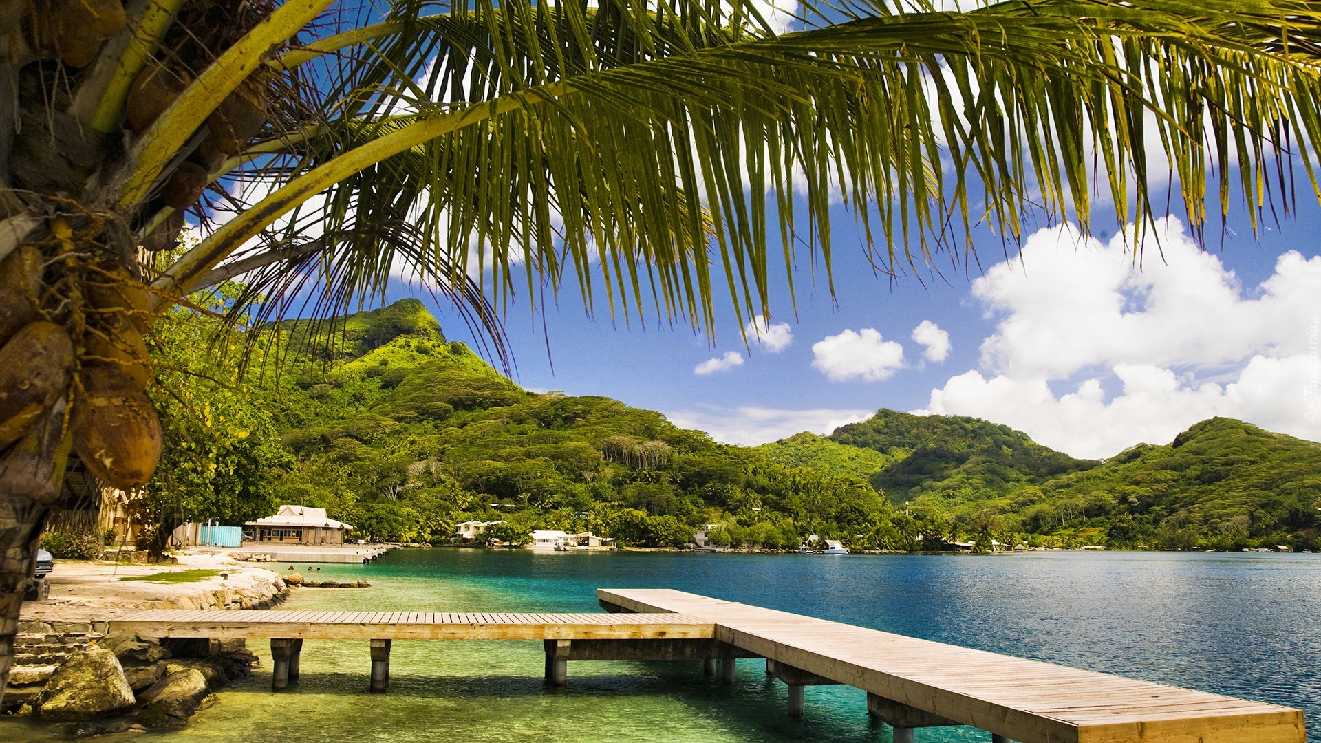 Edytor tapety: Palma, Pomost, Ocean, Tropik