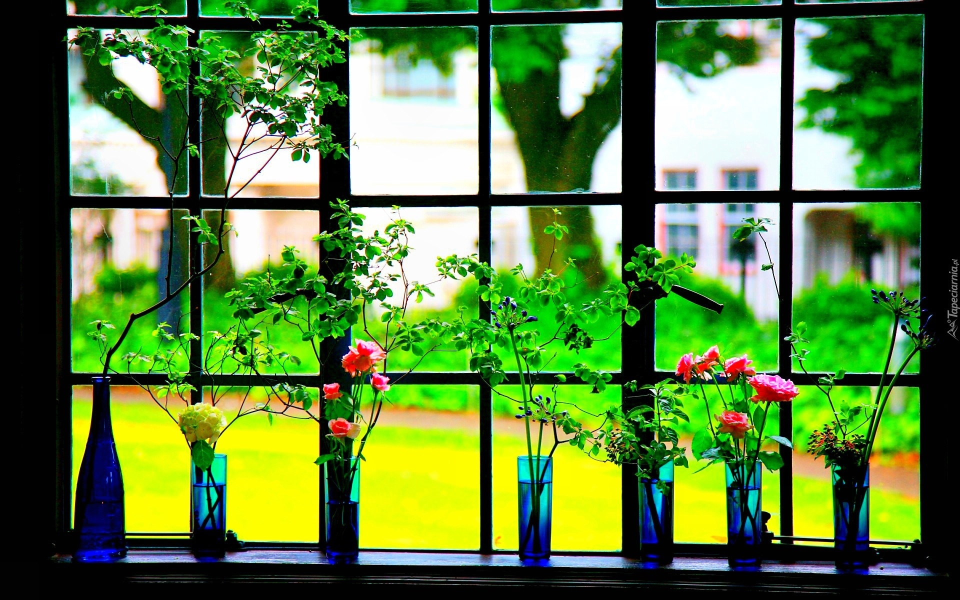 Edytor tapety: Okno, Wazoniki, Rośliny, Róże, Widok