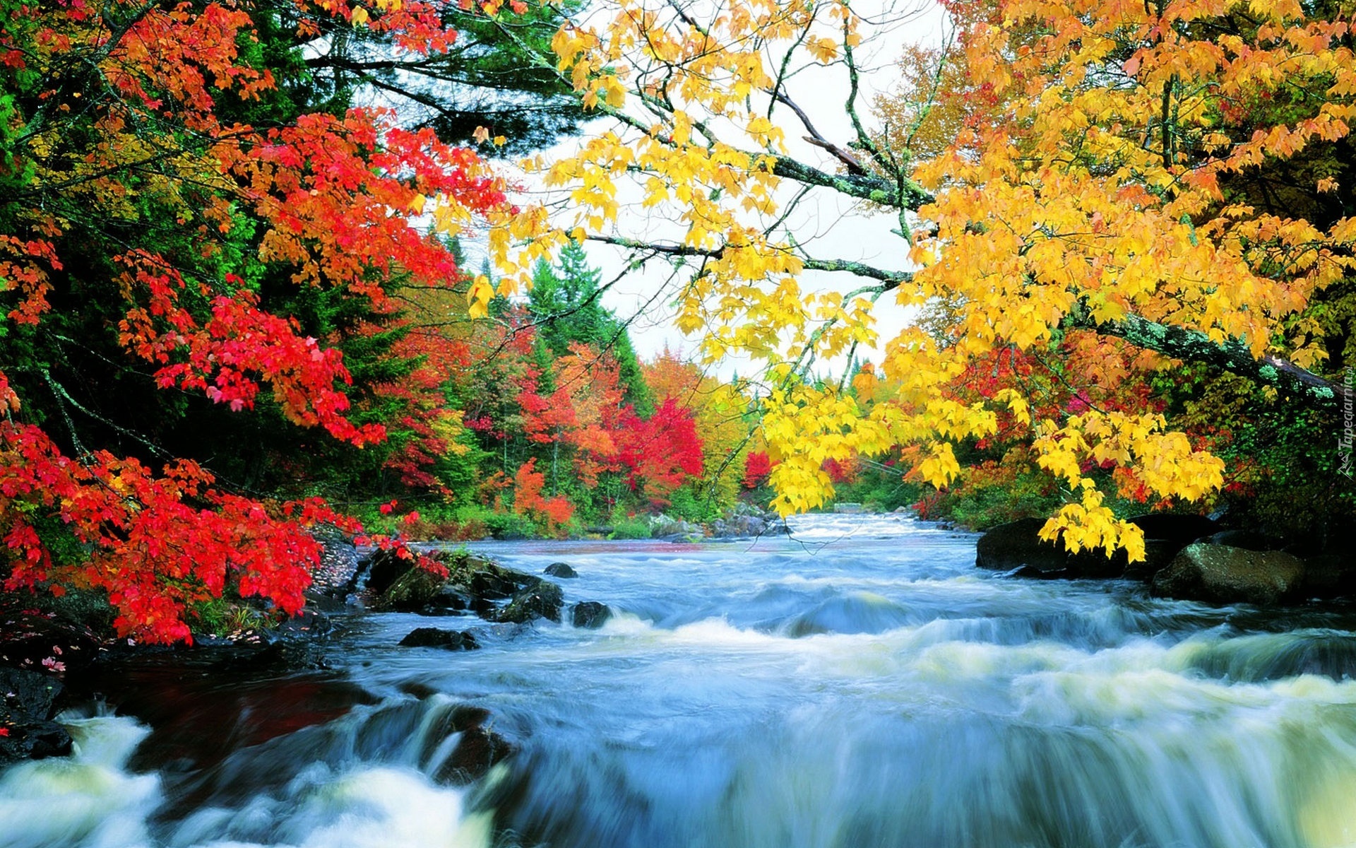 Edytor tapety: Rzeka, Drzewa, Jesień