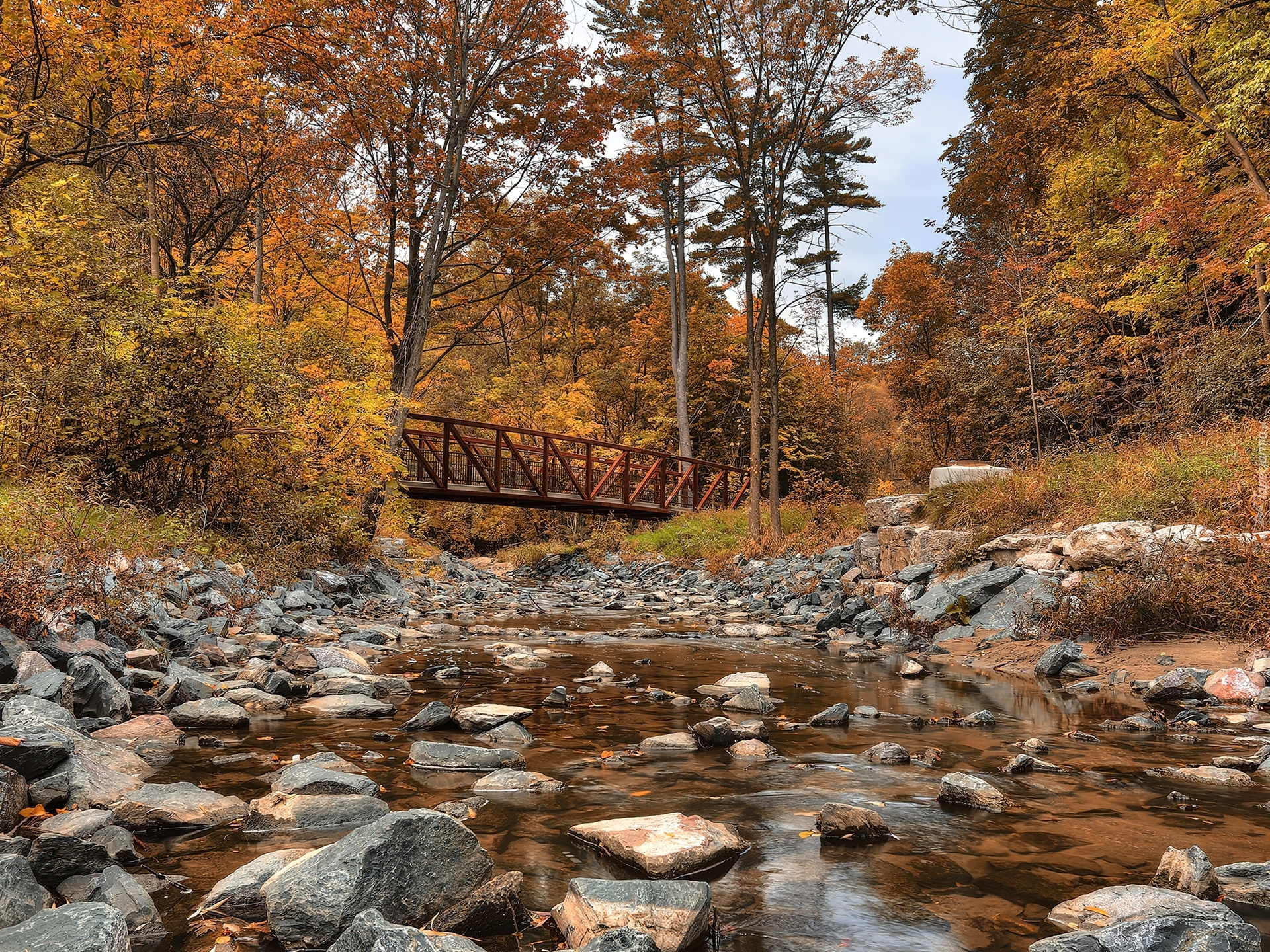 Edytor tapety: Las, Rzeczka, Kamienie, Jesień