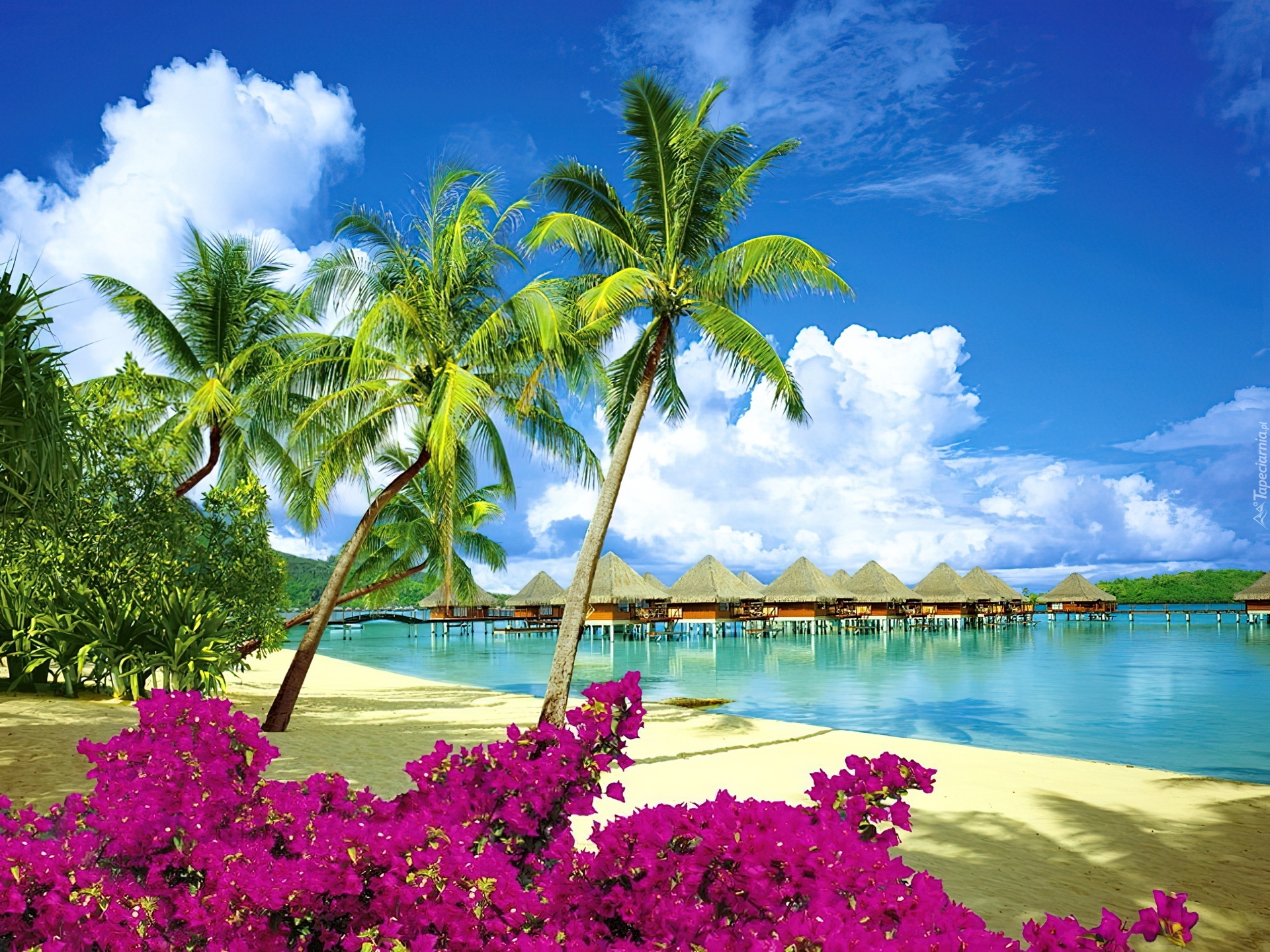 Edytor tapety: Morze, Plaża, Kwiaty, Palmy