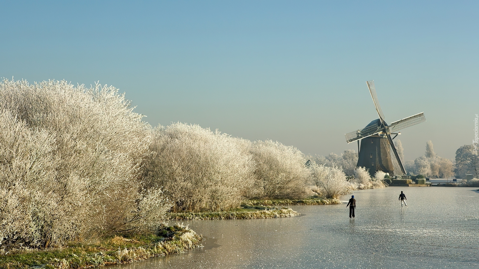 Edytor tapety: Zima, Rzeka, Wiatrak