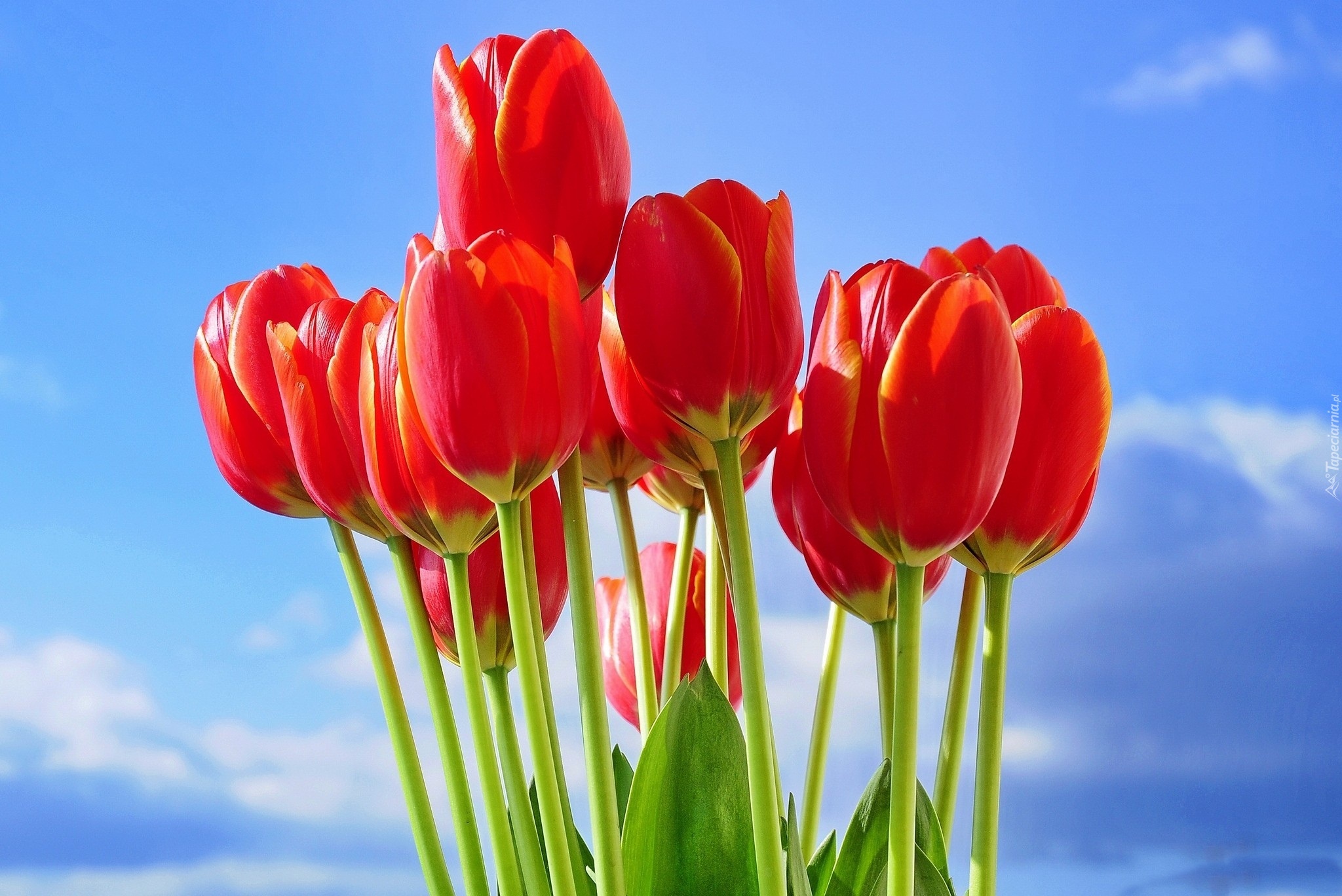 Edytor tapety: Czerwone, Tulipany, Niebo