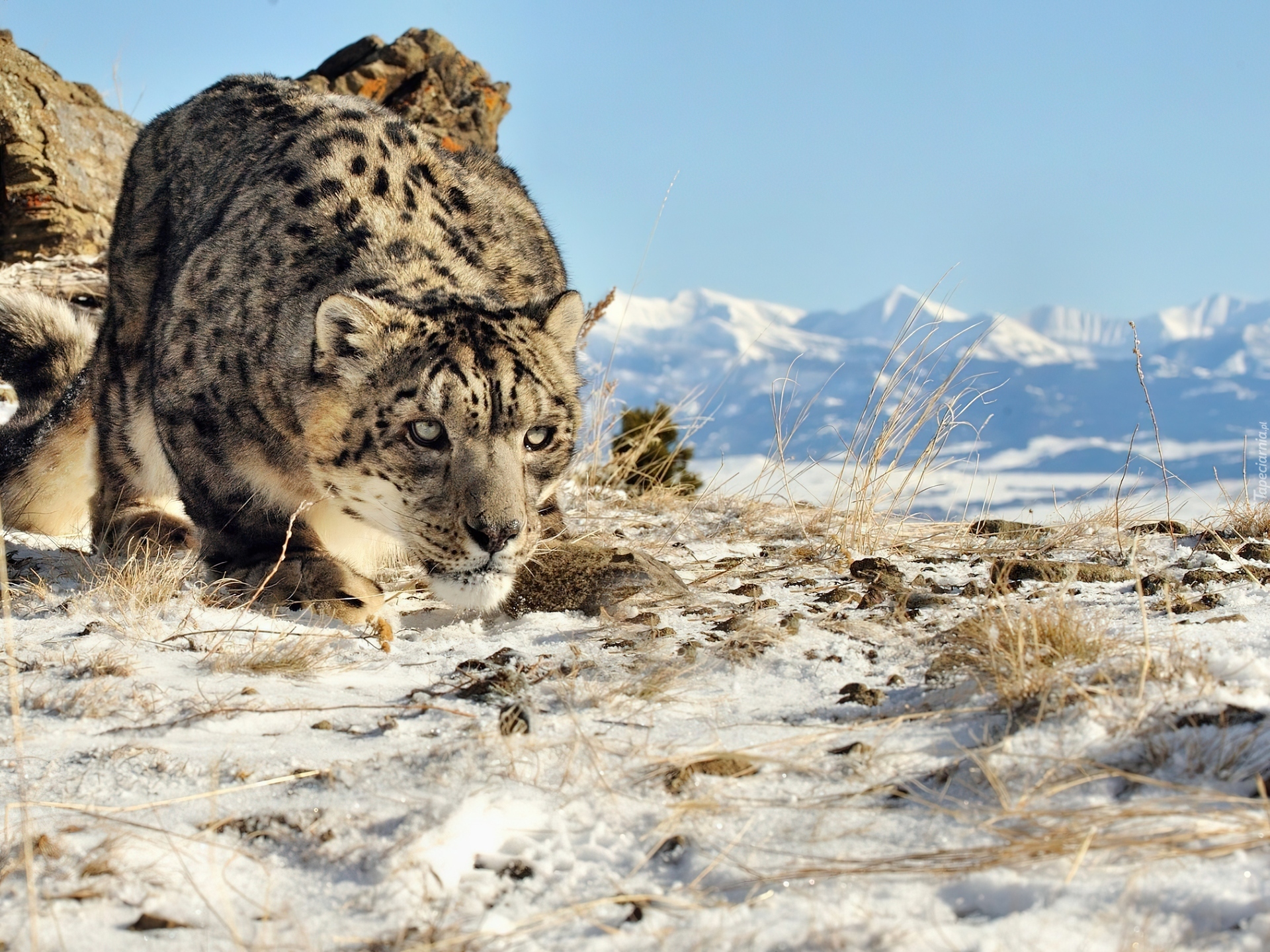 Edytor tapety: Lampart Śnieżny, Góry, Polowanie