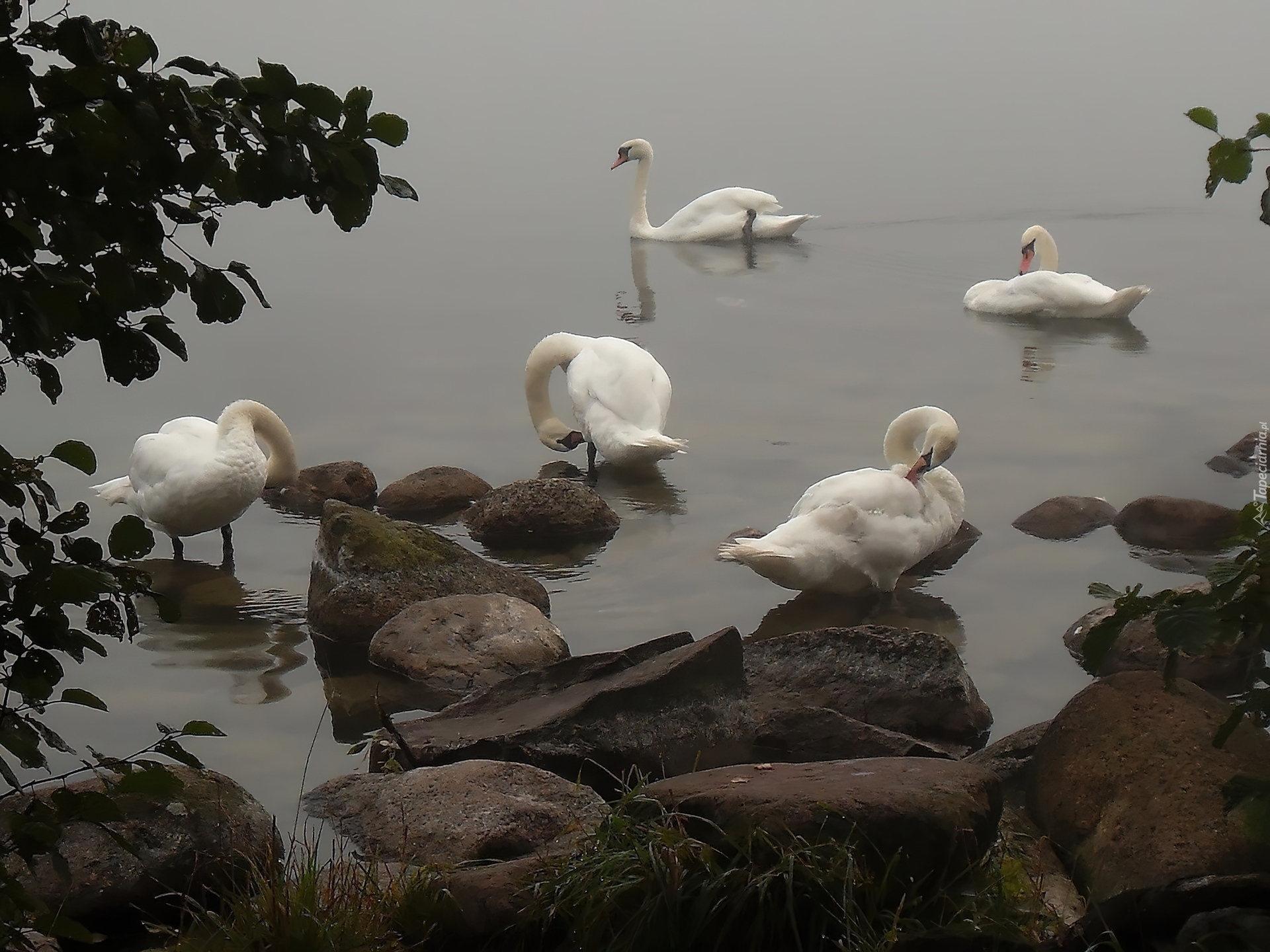 Edytor tapety: Łabędzie, Kamienie
