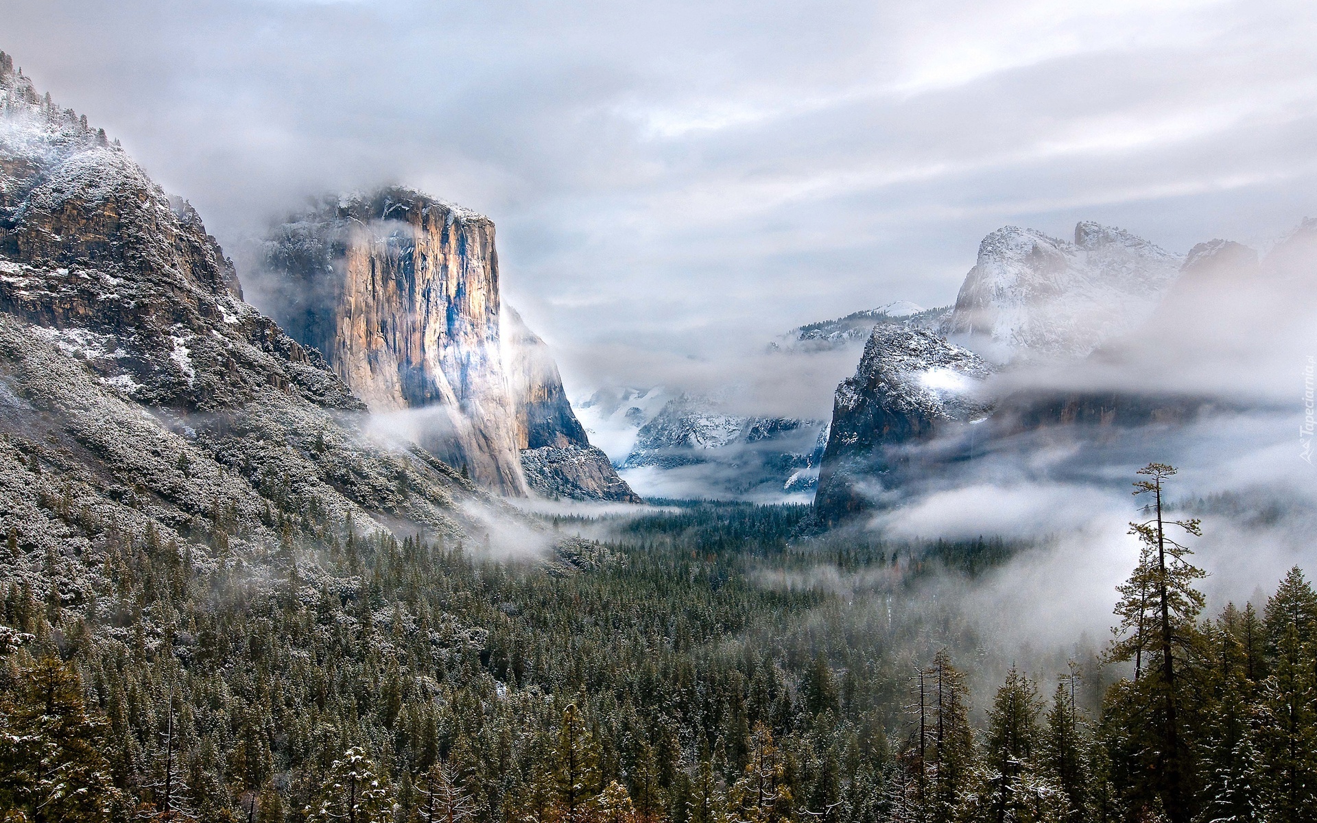 Edytor tapety: Ośnieżone, Góry, Lasy, Chmury