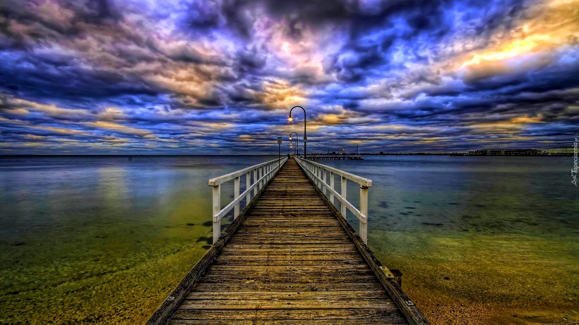 Edytor tapety: Chmury, Jezioro, Molo