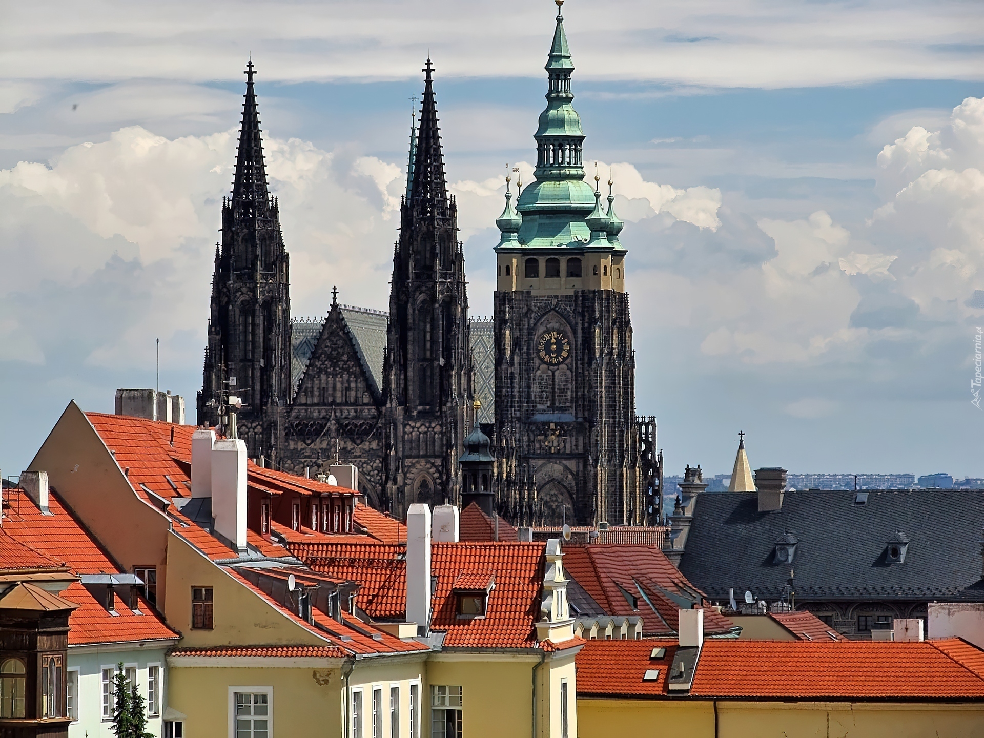 Edytor tapety: Czechy, Praga, Katedra, Św. Witta, Domy, Dachy, Chmury