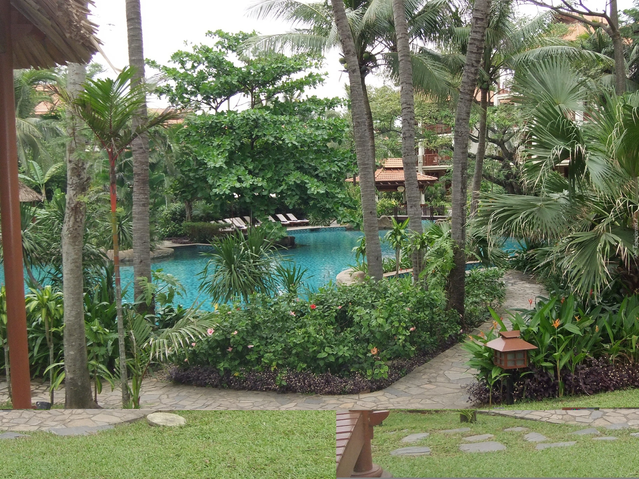 Edytor tapety: Ogród, Tropikalny, Basen, Alejki