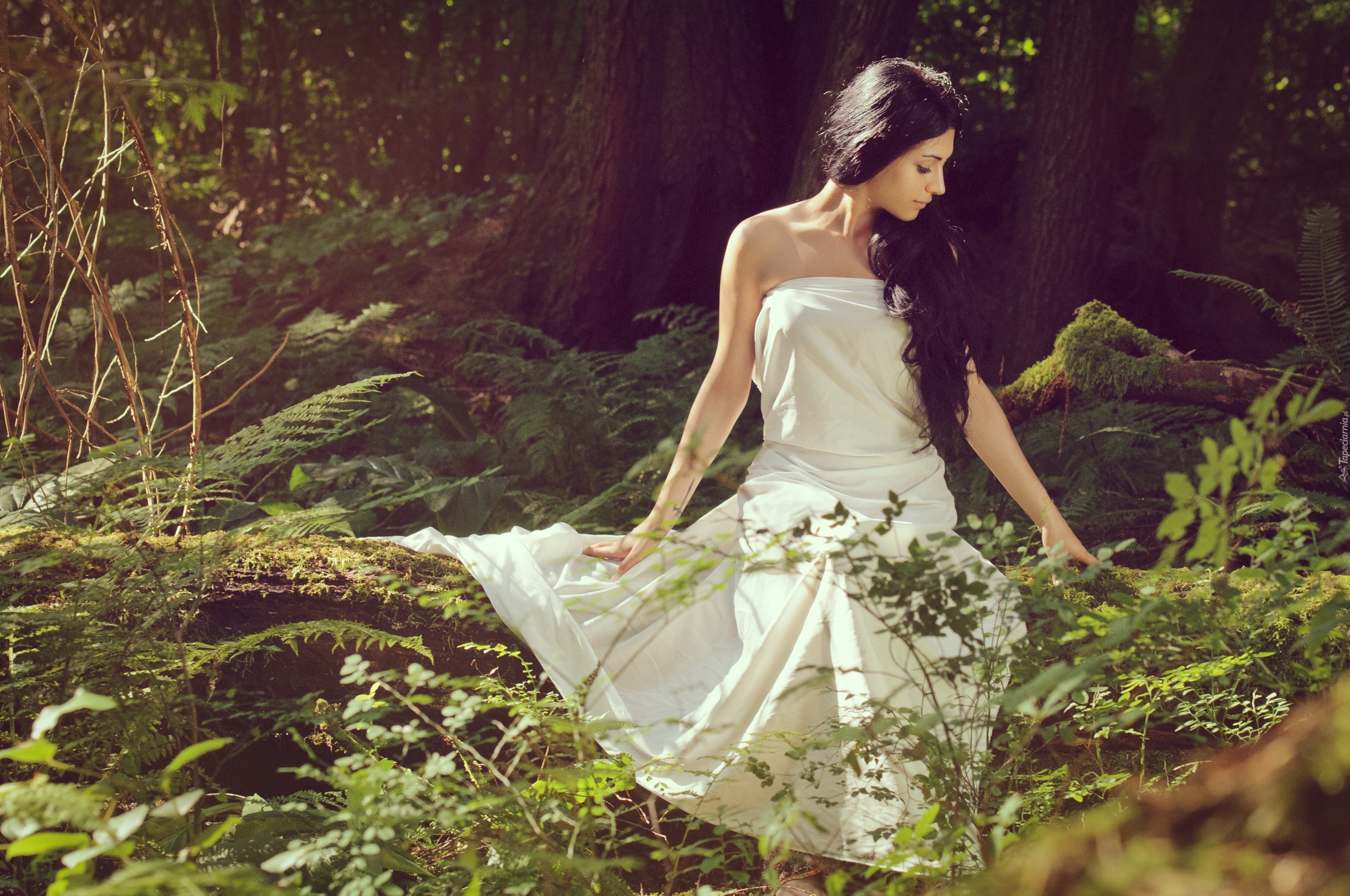 Edytor tapety: Kobieta, Las, Paprocie