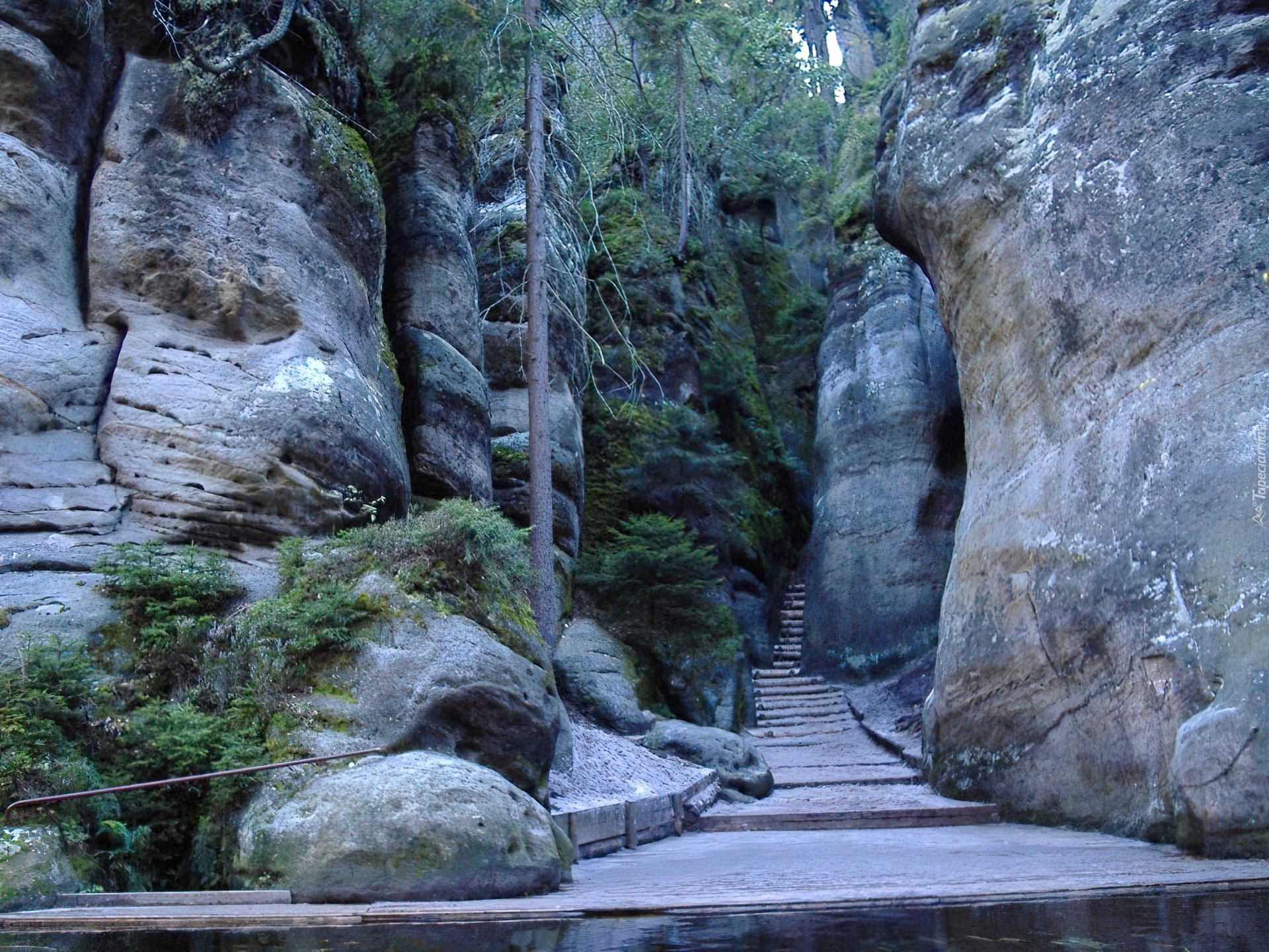 Edytor tapety: Skały, Schodki, Drzewa, Adrspach, Czechy