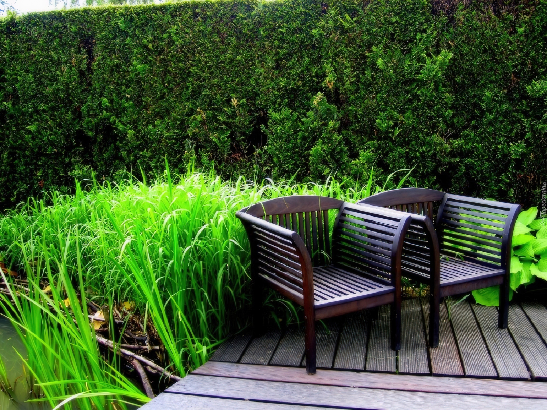 Edytor tapety: Przyroda, Ogród, Krzesła, Drewniane
