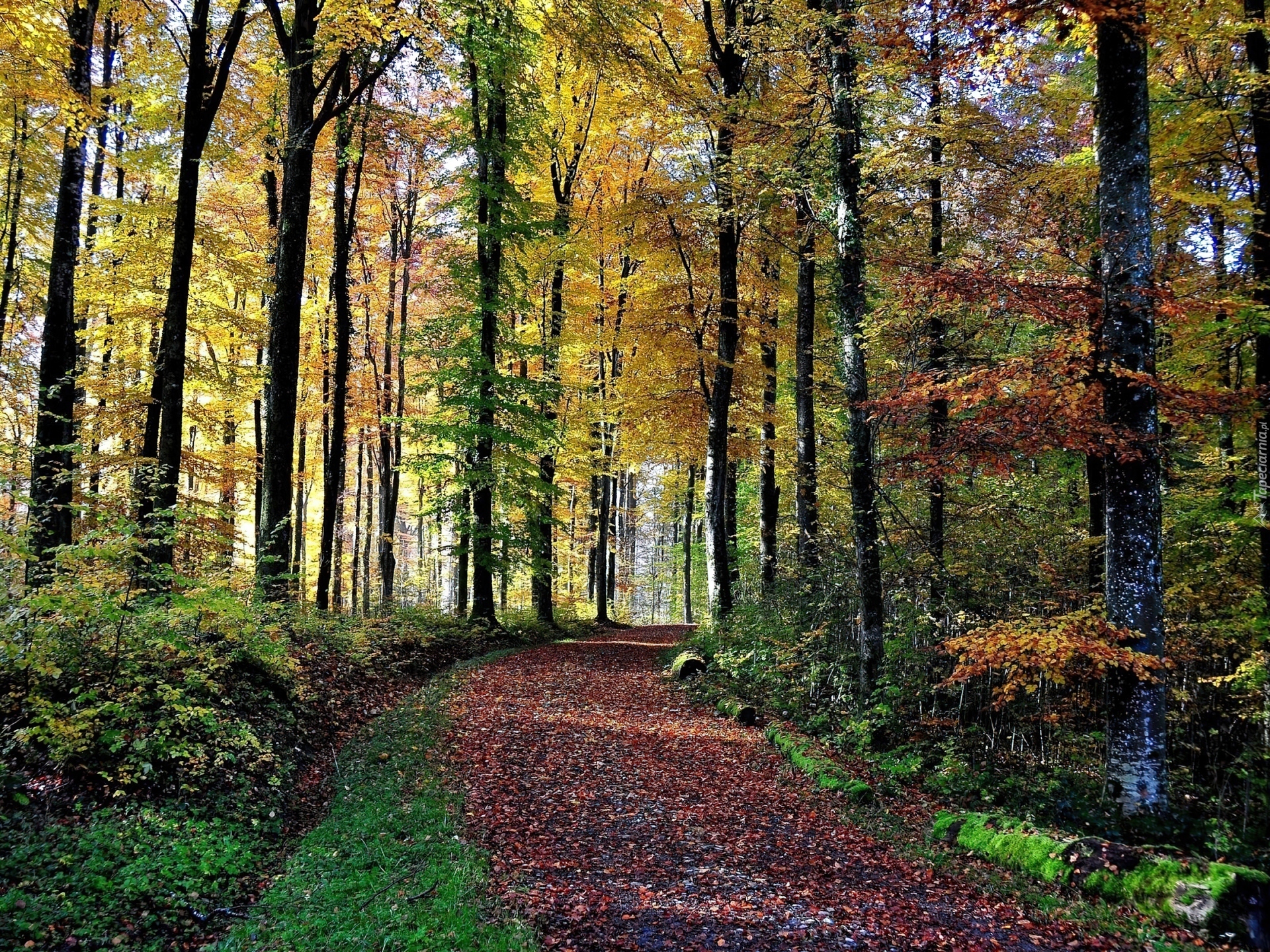 Edytor tapety: Droga, W, Lesie, Jesień