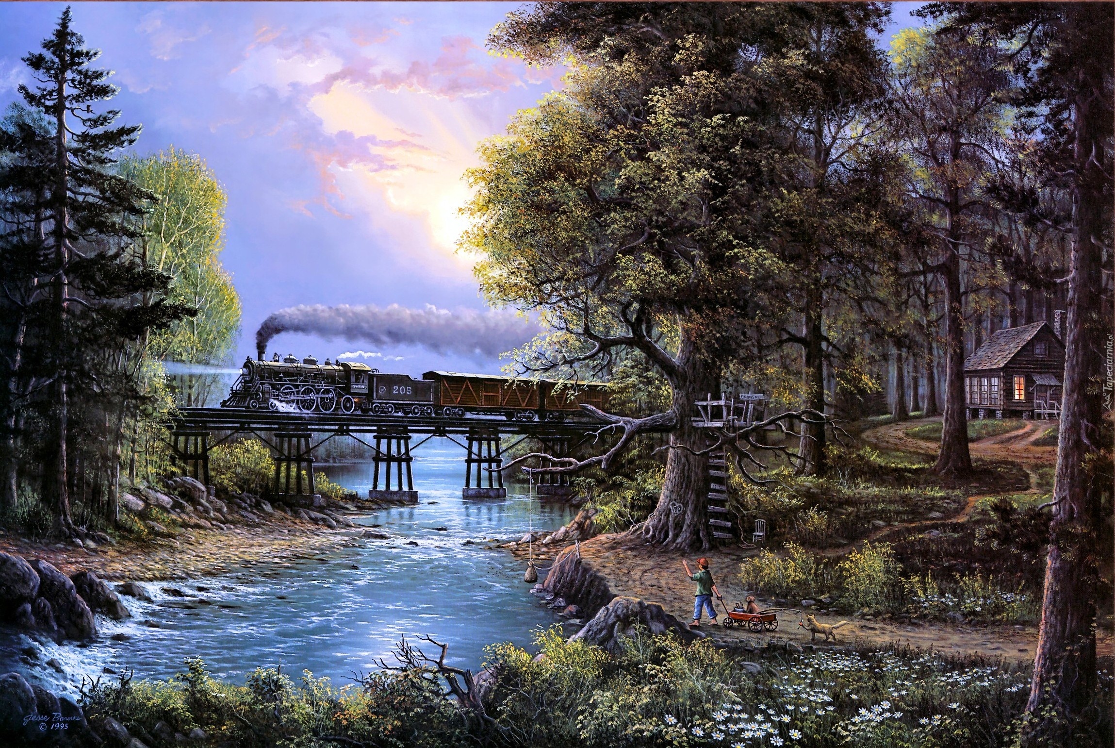 Edytor tapety: Pociąg, Most, Rzeka, Obraz