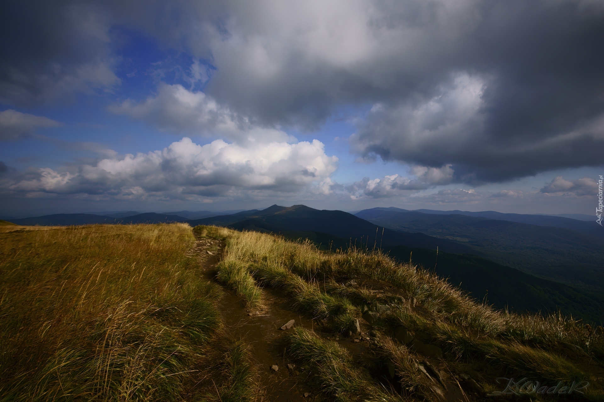 Edytor tapety: Bieszczady, Góry, Trawa, Chmury