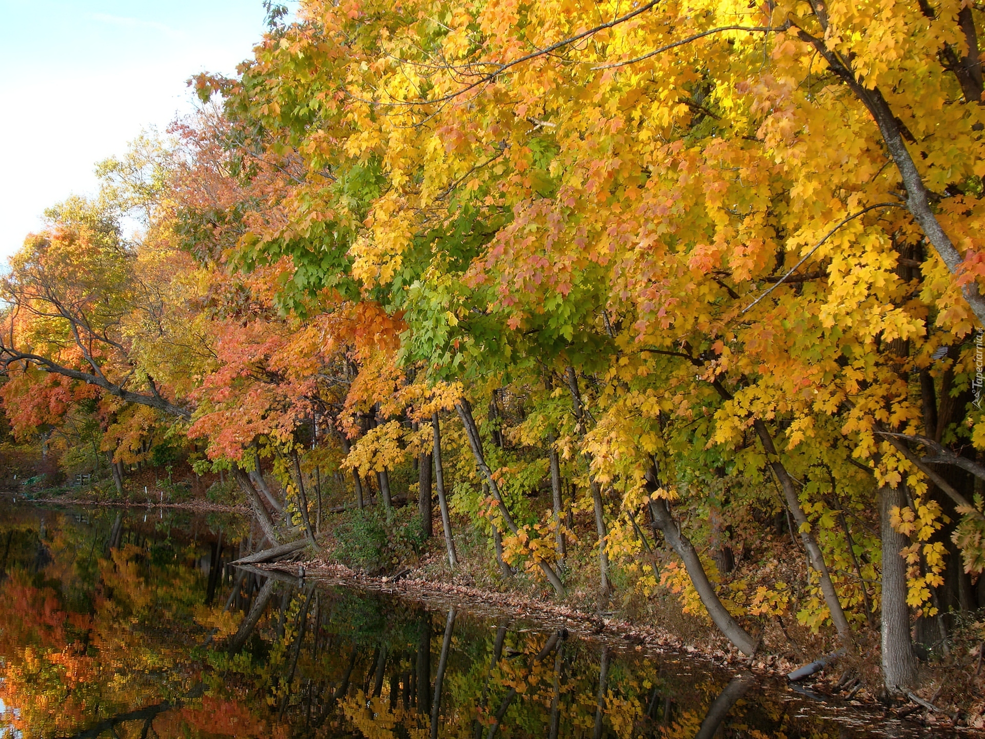 Edytor tapety: Rzeka, Drzewa, Jesień