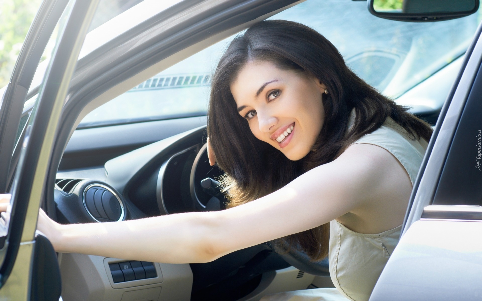 Edytor tapety: Brunetka, Samochód, Uśmiech
