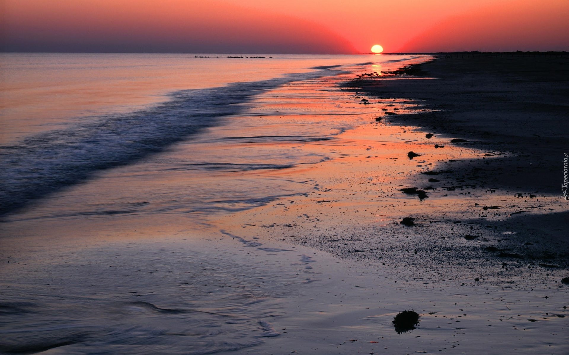 Edytor tapety: Morze, Plaża, Zachód, Słońca