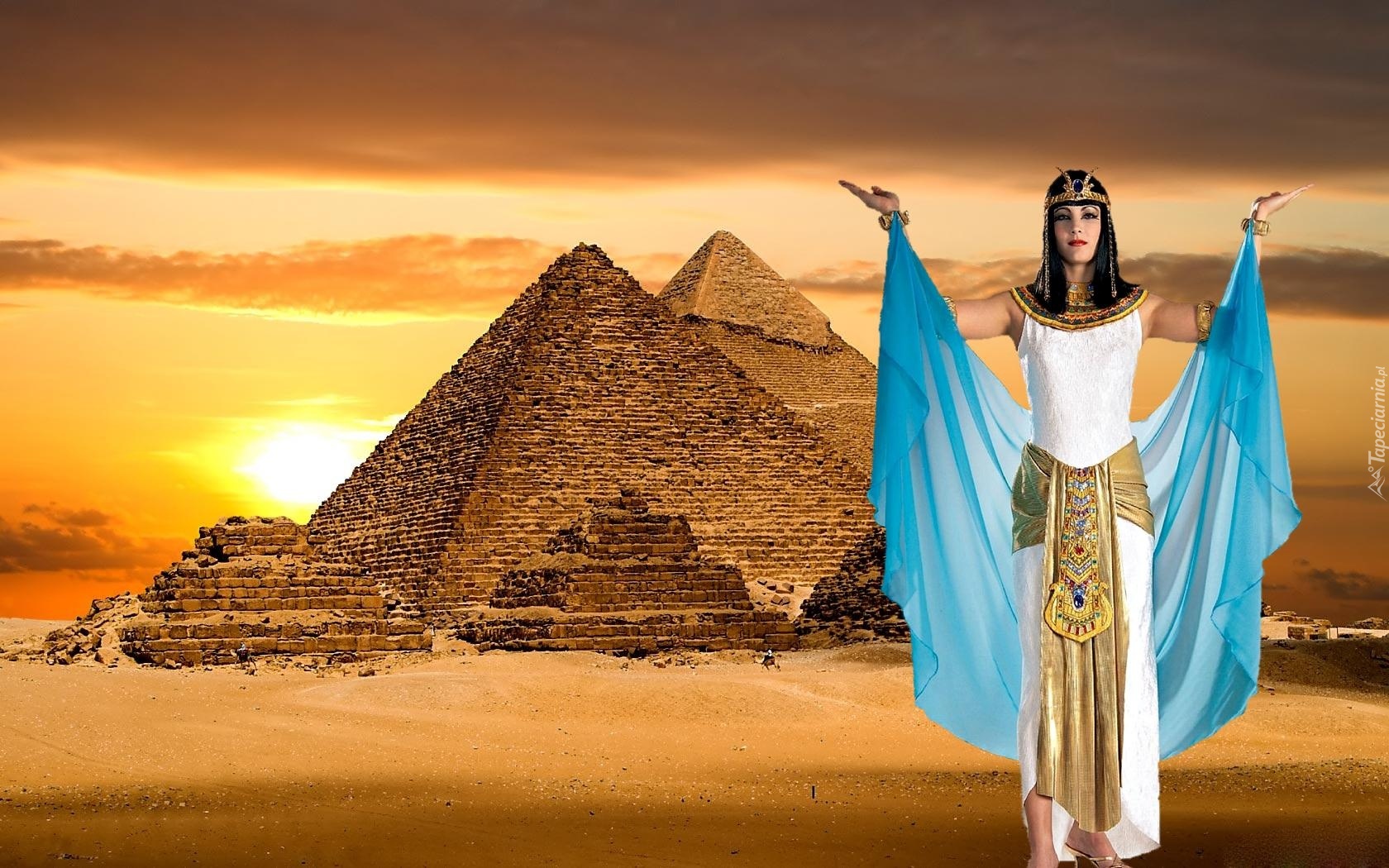 Edytor tapety: Zachód, Słońca, Piramidy, Kobieta