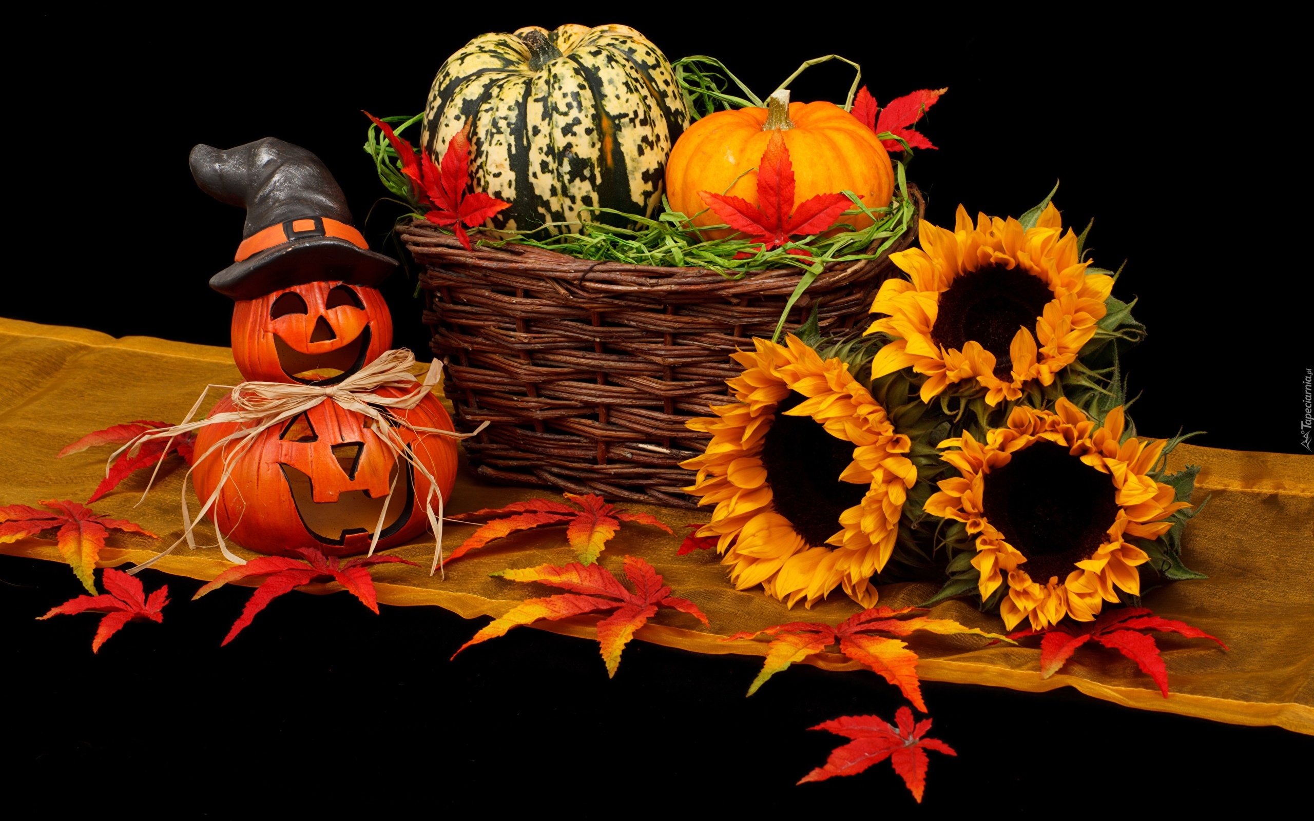 Edytor tapety: Kosz, Słoneczniki, Dynie, Halloween