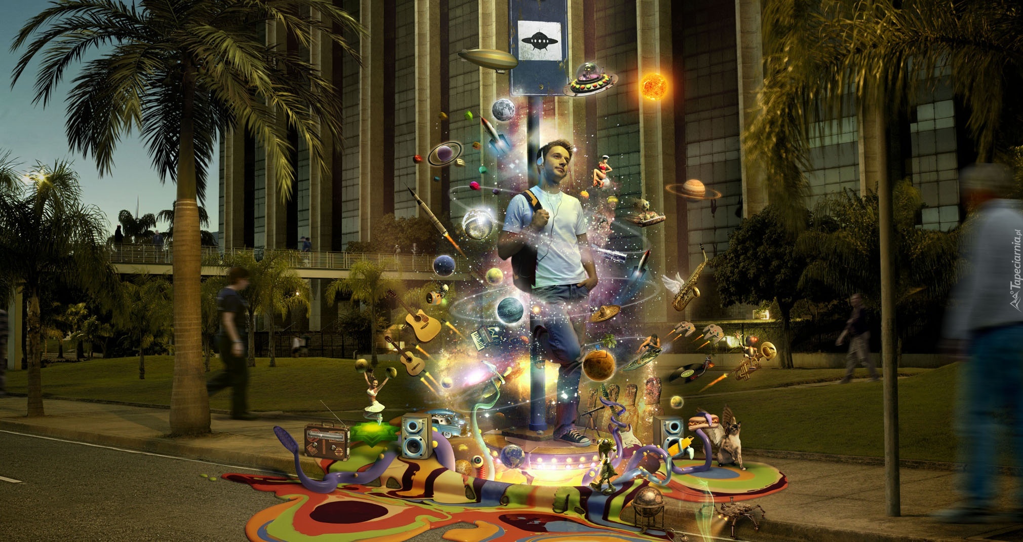 Edytor tapety: Mężczyzna, Przystanek, Autobusowy, Muzyka