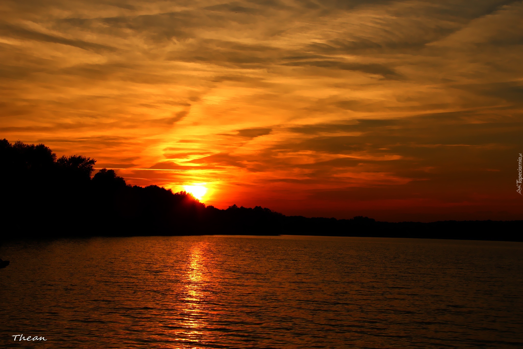 Edytor tapety: Zachód, Słońca, Wieczór, Jezioro