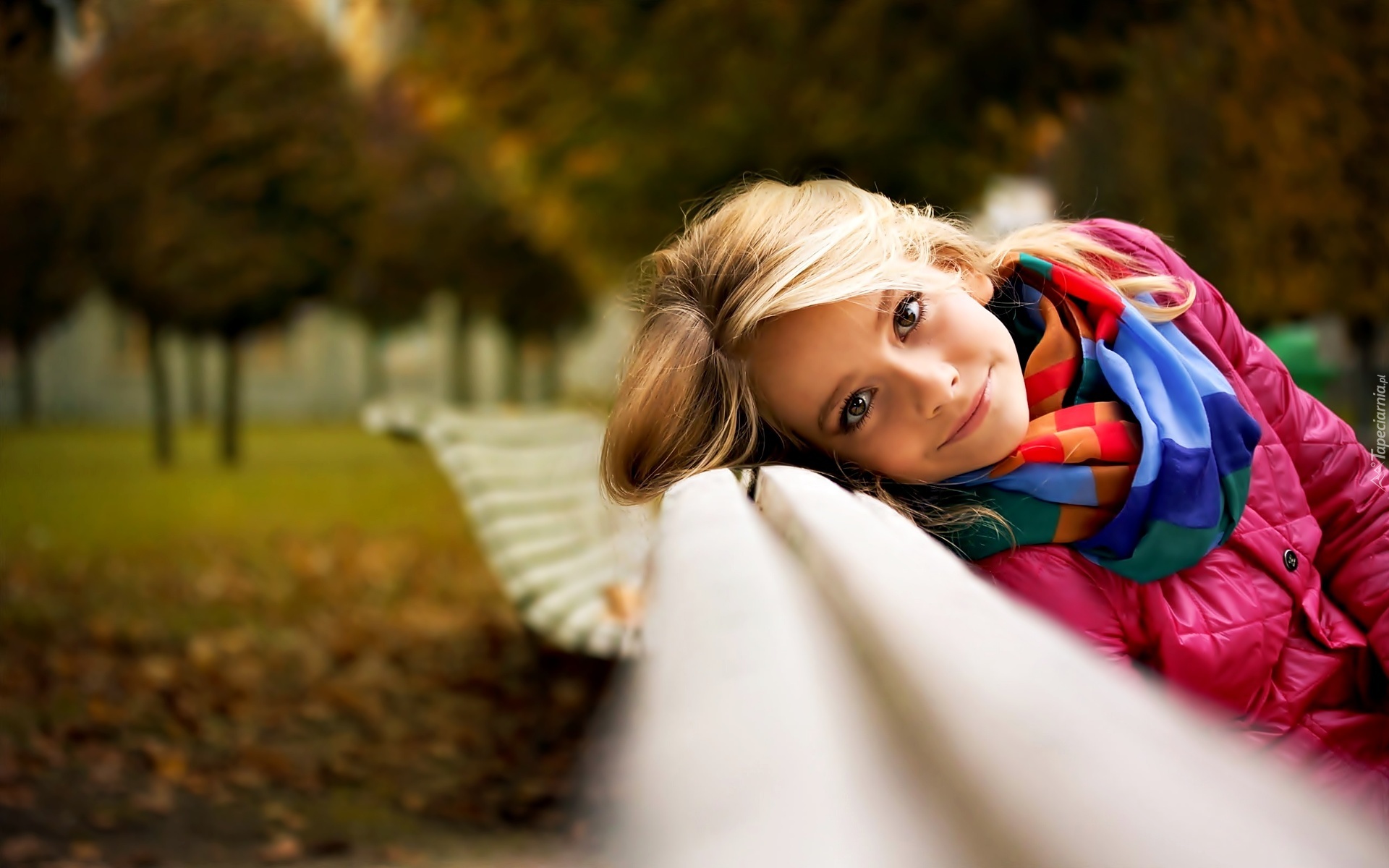 Edytor tapety: Kobieta, Blondynka, Uśmiech, Park, Ławka