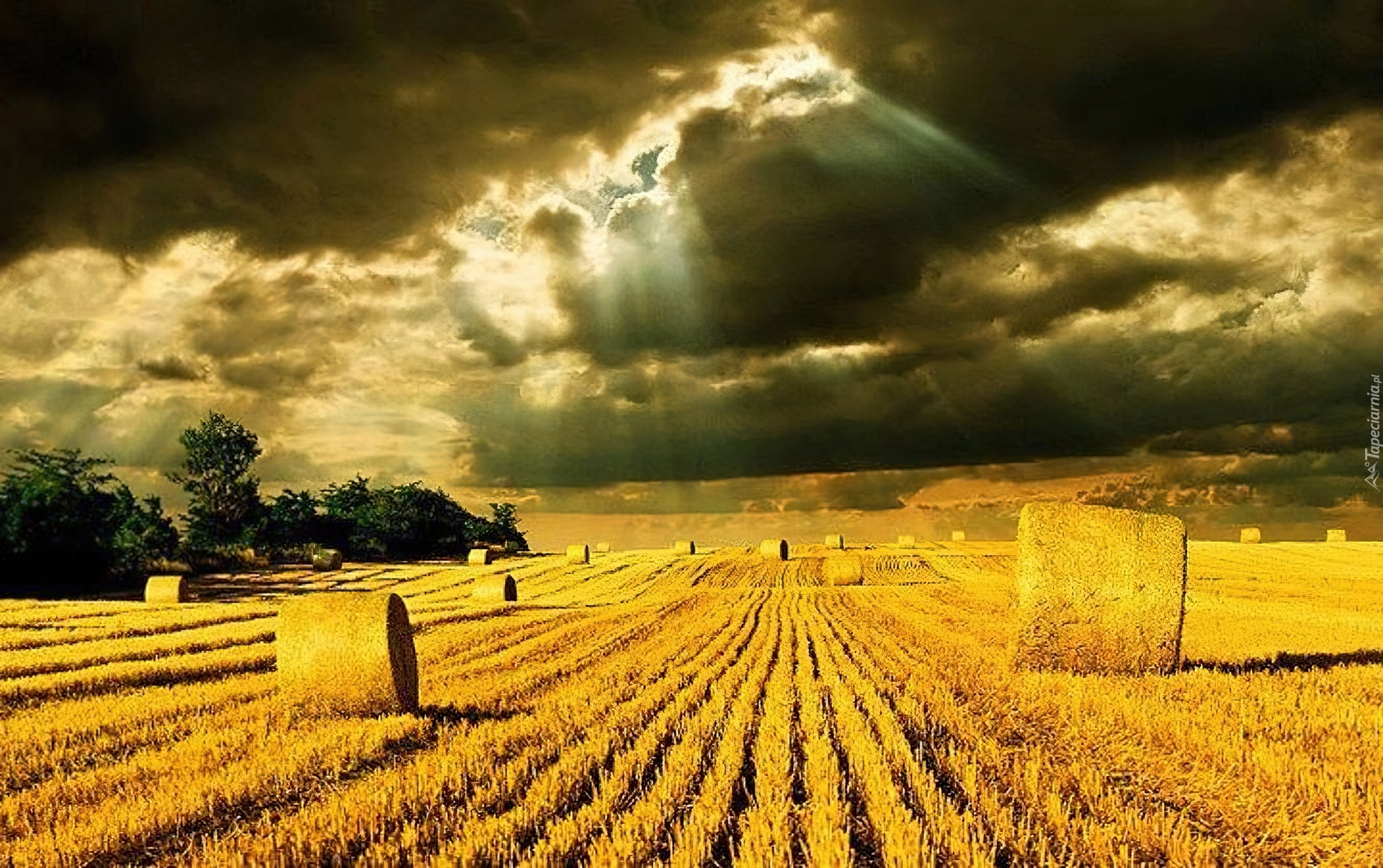 Edytor tapety: Pole, Bele, Zboża, Pochmurne, Niebo