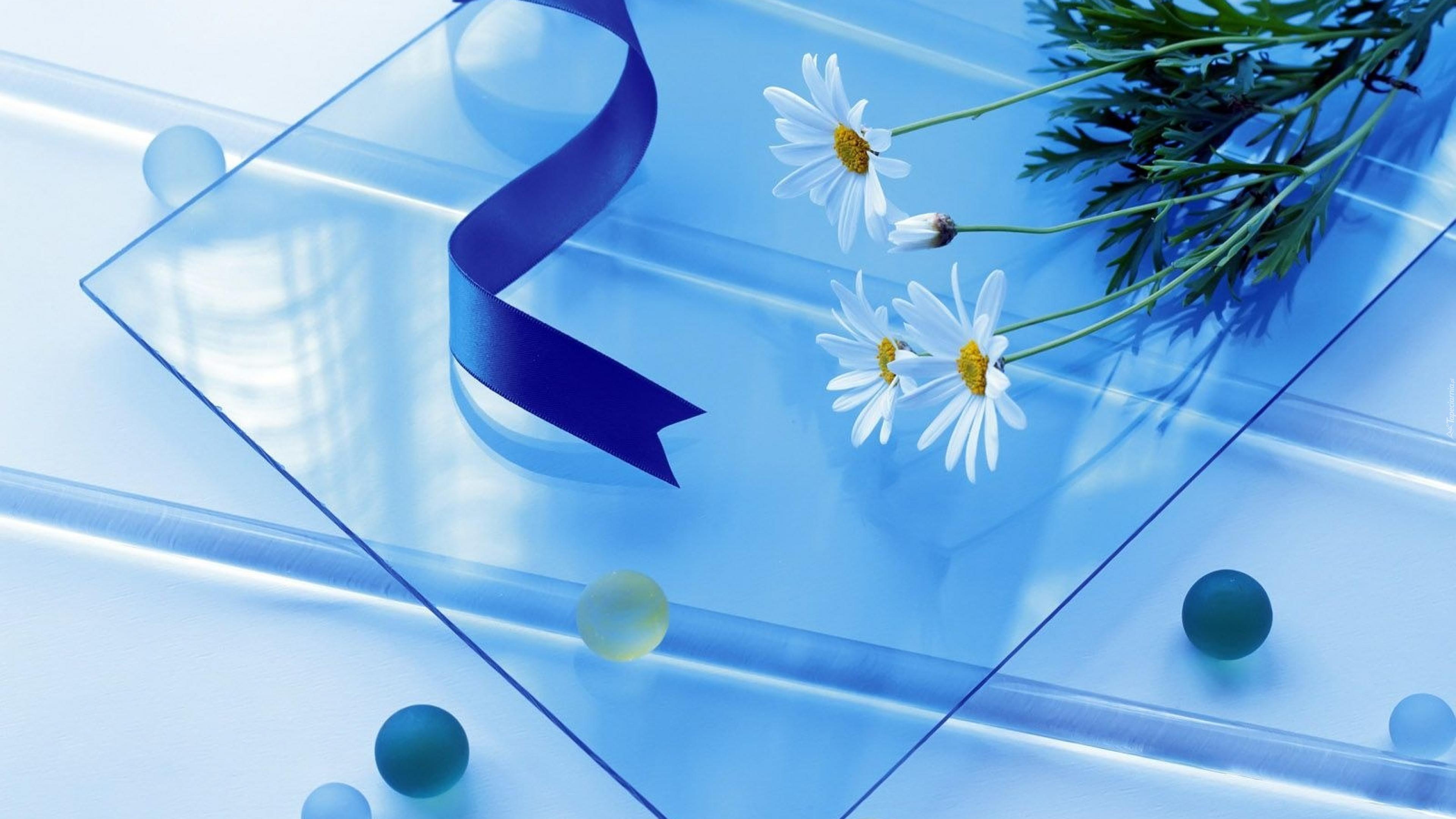 Edytor tapety: Szklana, Podstawka, Szarfa, Kwiaty, Margerytki