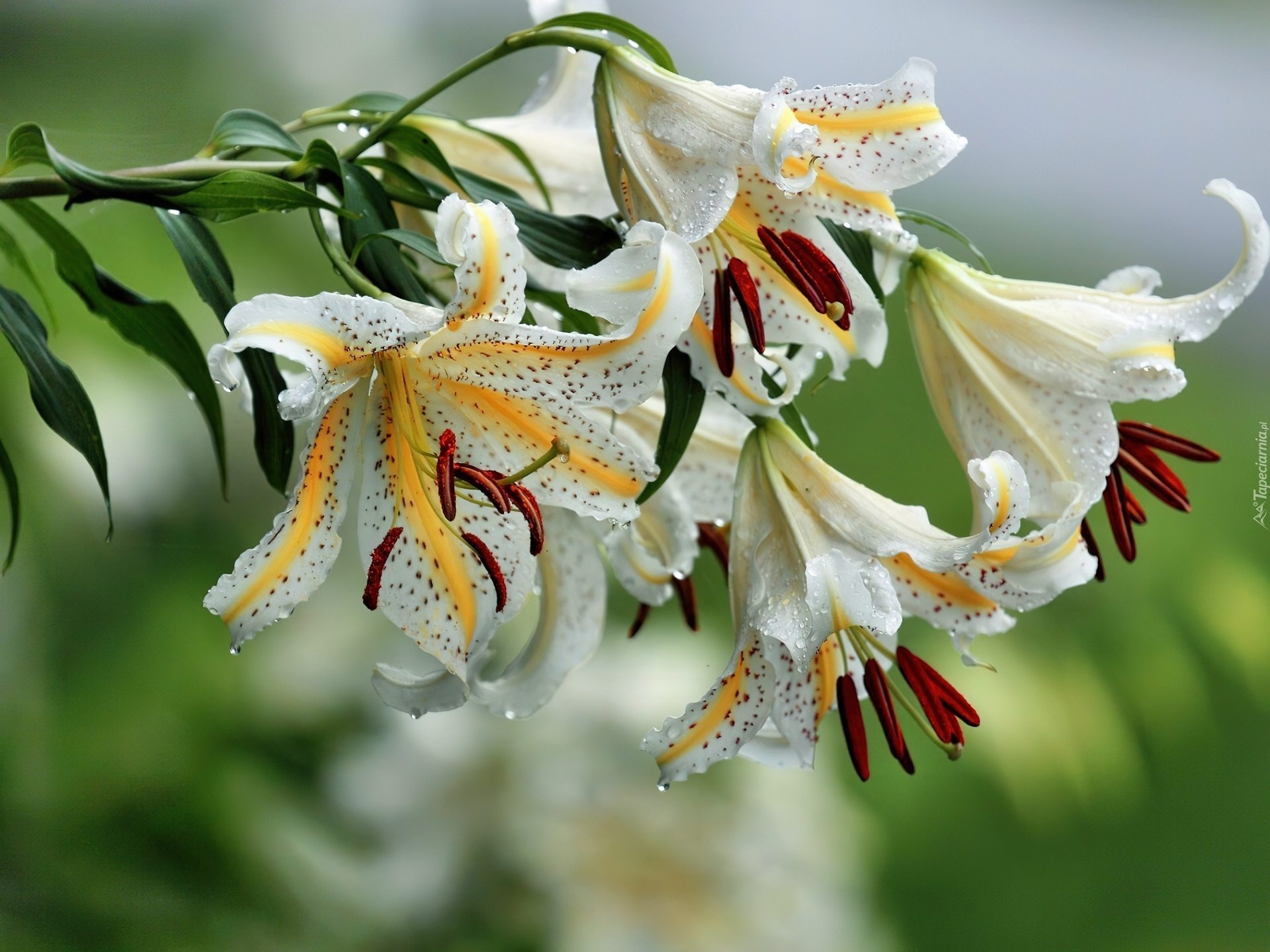 Edytor tapety: Białe, Lilie, Krople, Wody